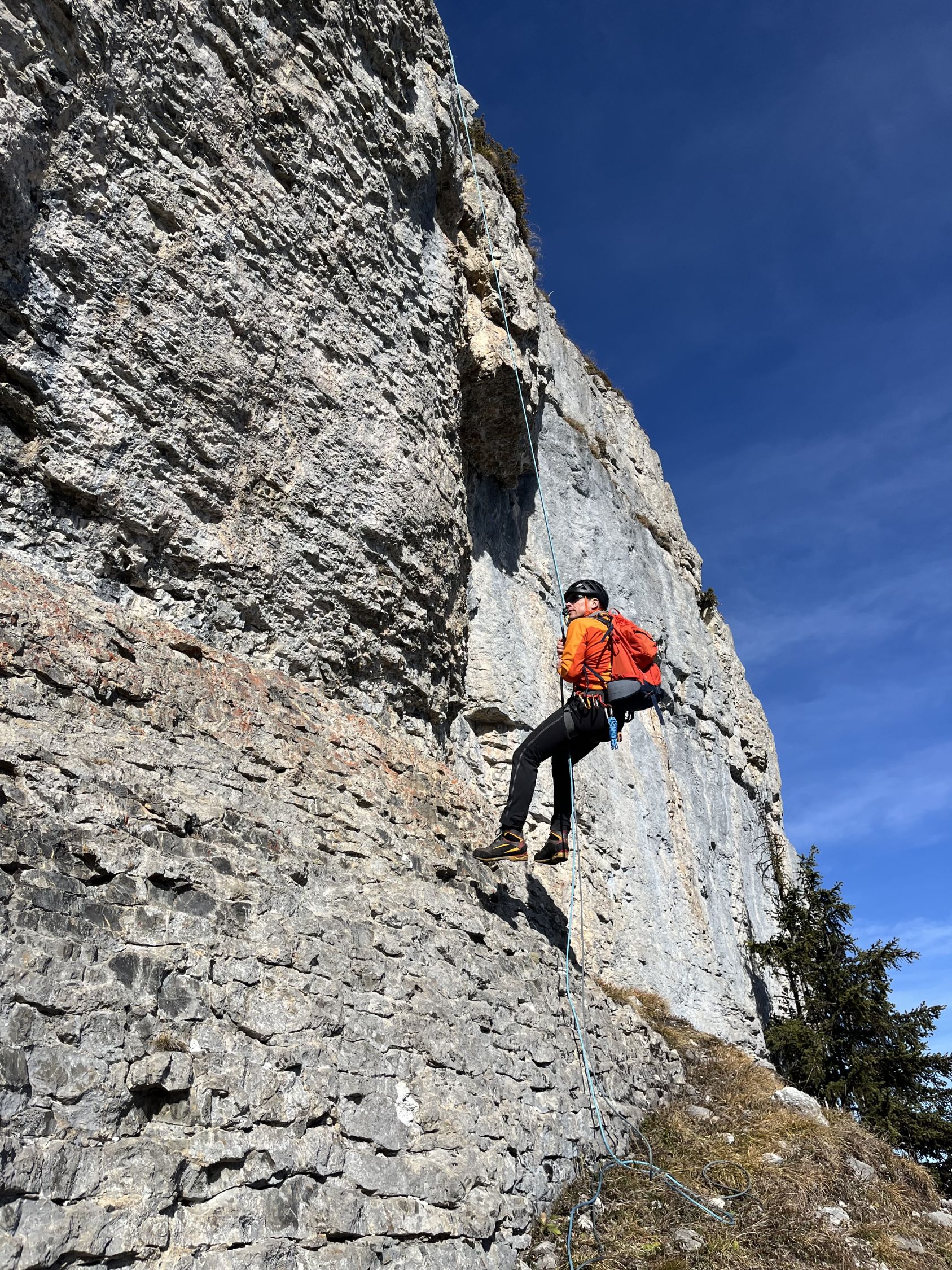Beste Verhältnisse. Der wenige Schnee beim Zustieg ist kompakt und gut begehbar.