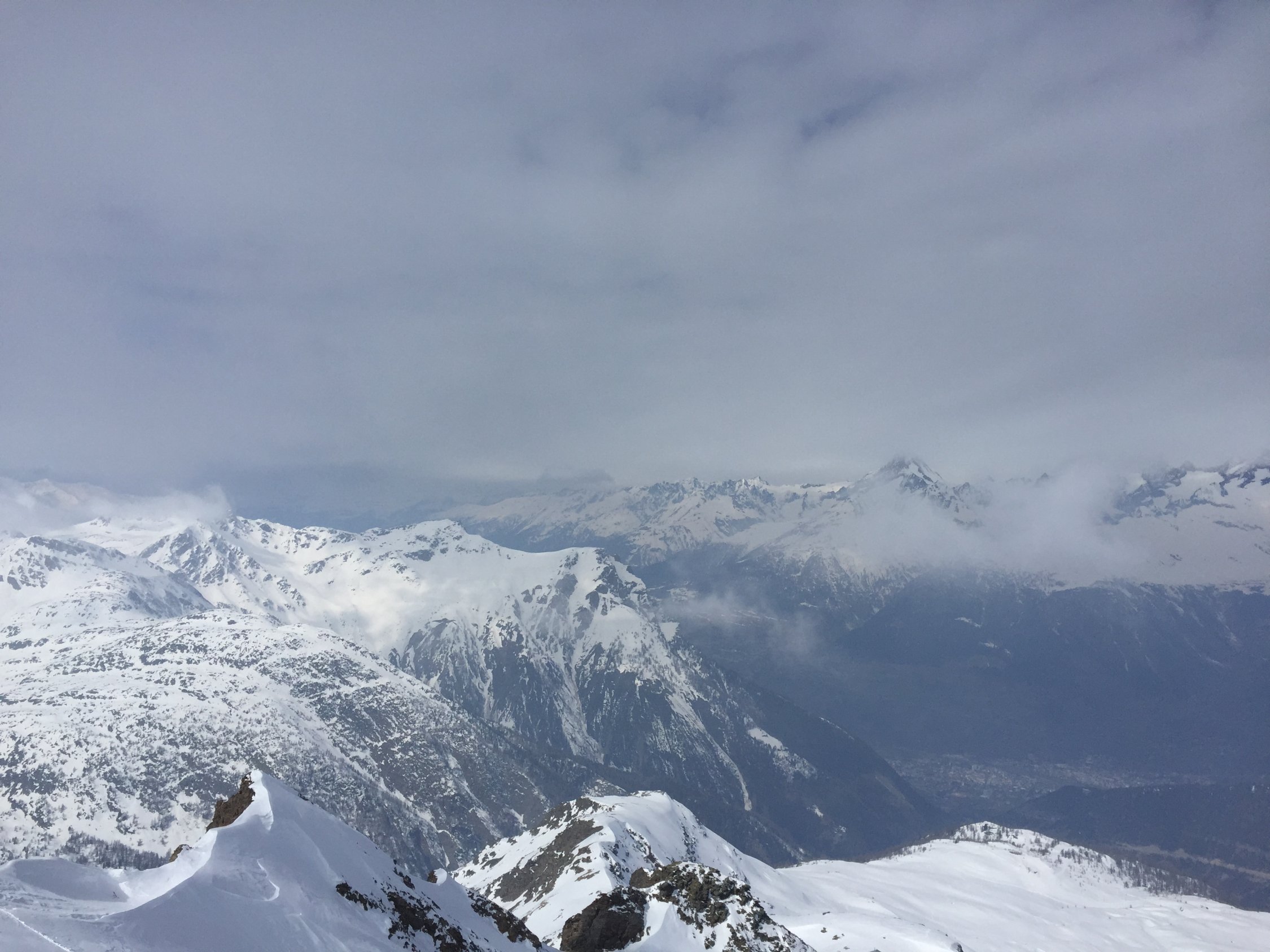 Anschließend mit aufgebundenen Skiern über den ausgeaperten Grat zur Mäderlücke. Abstieg ca 50 Meter noch ohne Ski. Dann den Hang querend zum Chaltwasertälli. Die Abfahrtsspur war gut aufgesulzt und wunderbar zu fahren.