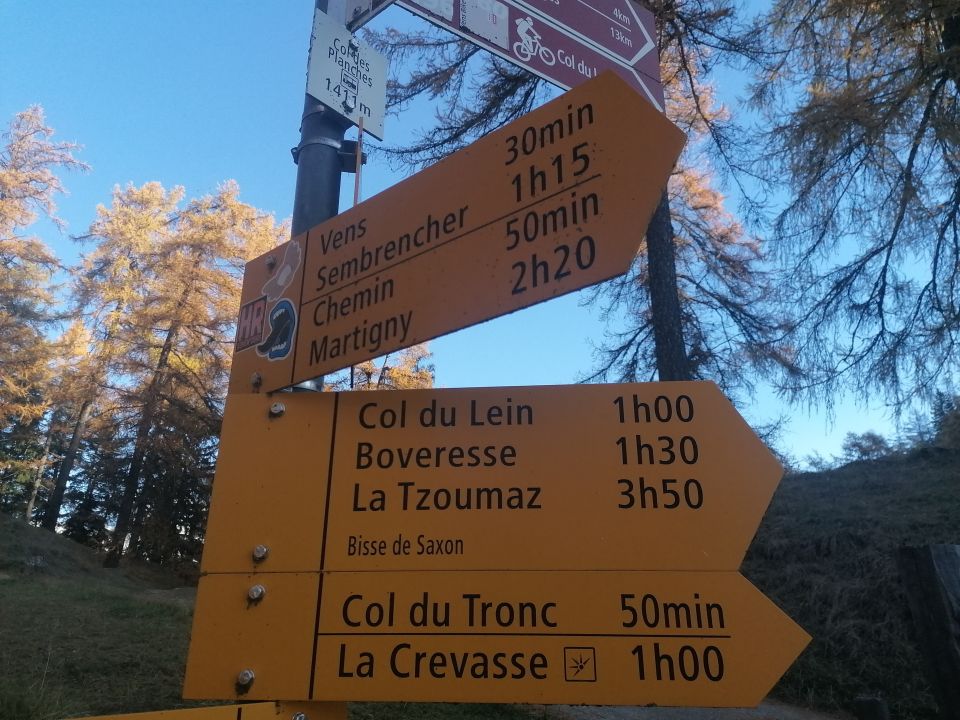 Wunderbare gemütliche Halbtages-Wanderung hoch über dem Val de Bagnes und dem Rhonetal in der nähe von Martigny. Vom Col des Planches oberhalb von Sembrancher und Vens gehts über einen schönen Gratrücken zum La Crevasse 1808m, und weiter auf den Les Blisiers 1949m. Das Panorama ins schweizerische Mont Blanc Massiv und die westlichen Berner Alpen ist grandios.