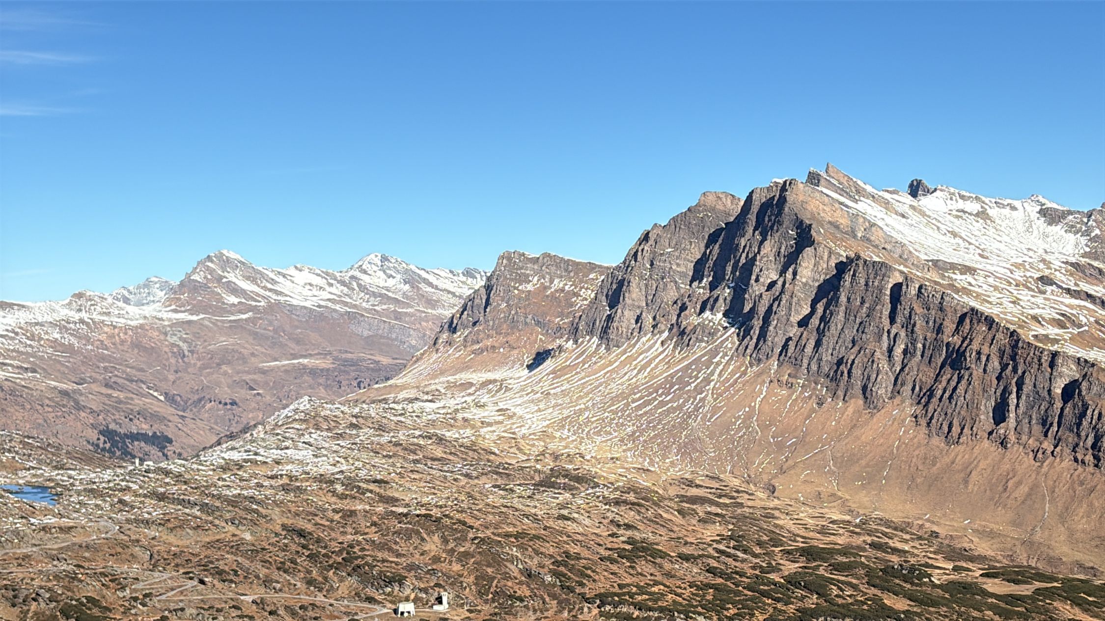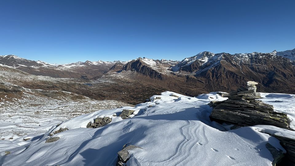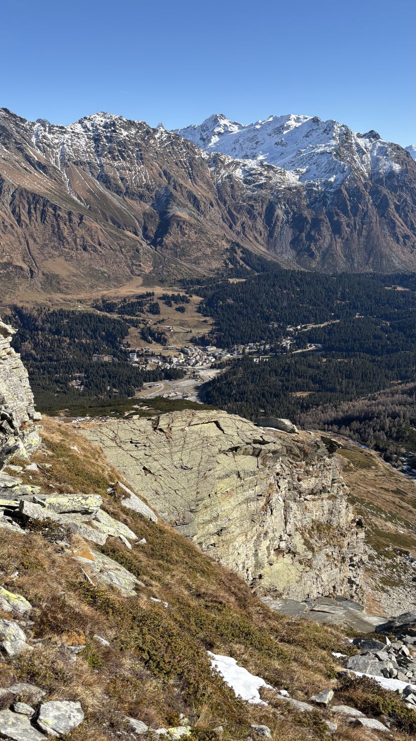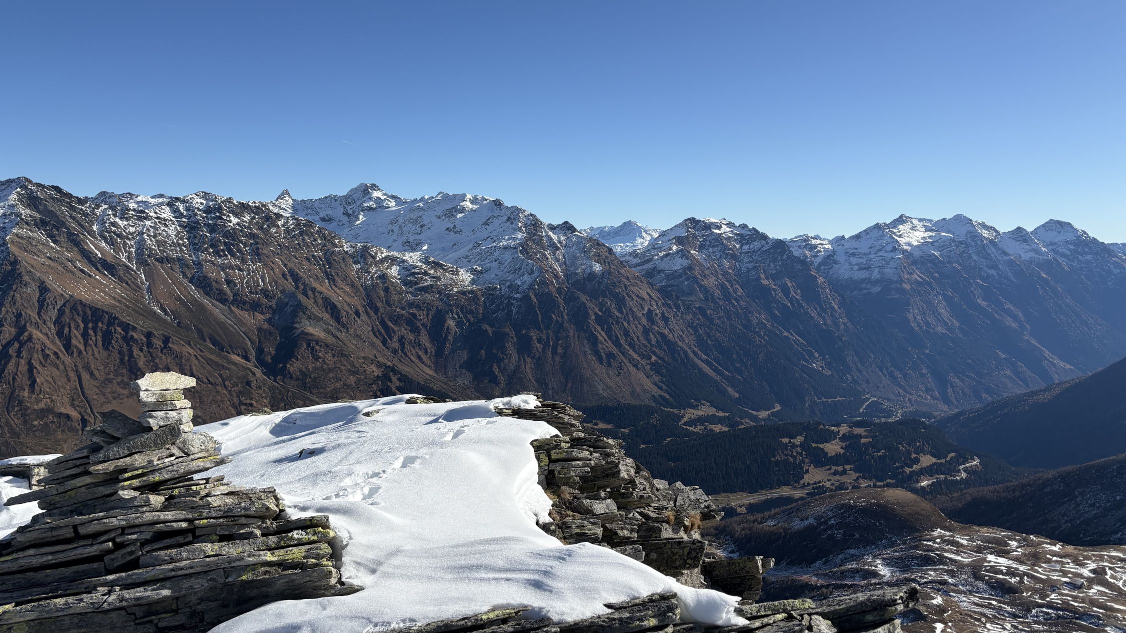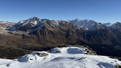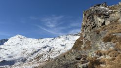 Der Weiterweg bis auf den Piz de Mucia sieht sehr herausfordernd aus und wäre ohne Schnee eine spannende Fortsetzung.