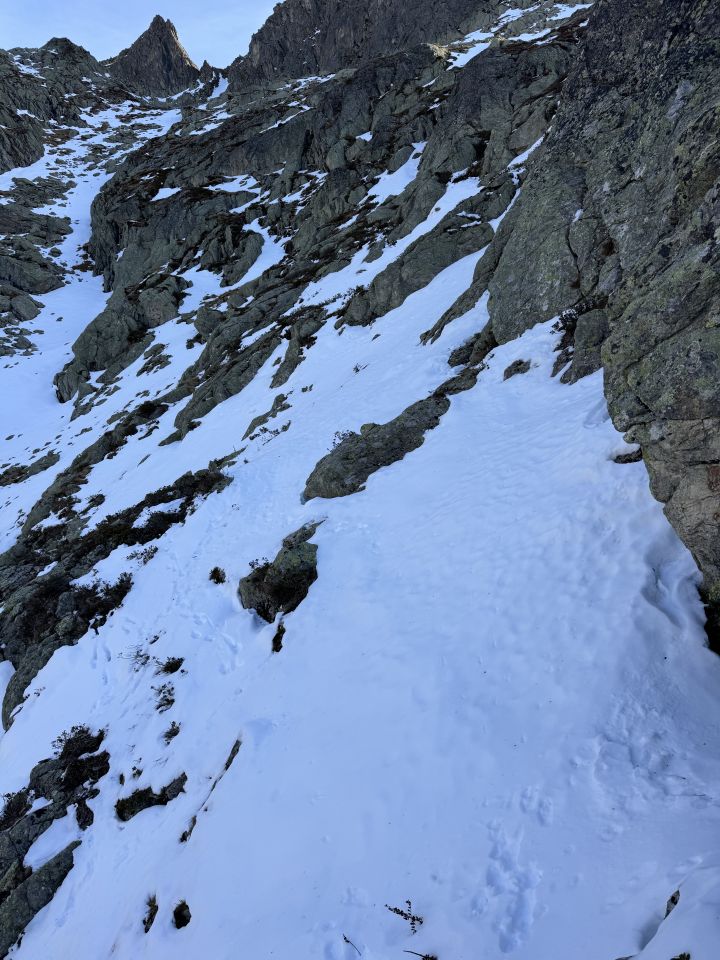 Steigeisen/Pickel waren für die ausgesetzte Querung von Homad zu den Bänzlouwiseen nützlich, sowie für das Couloir.