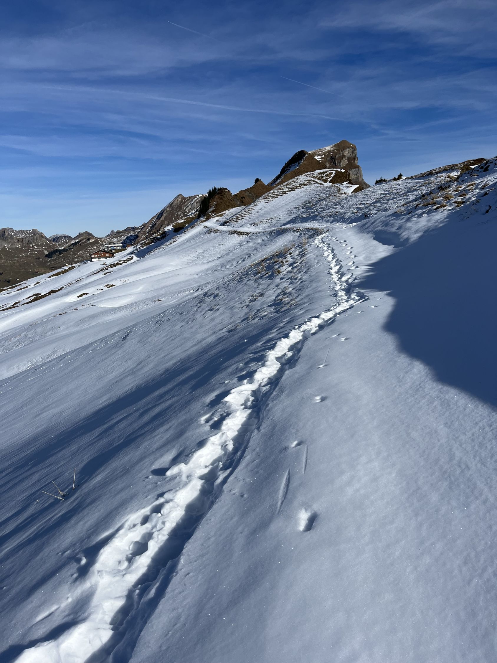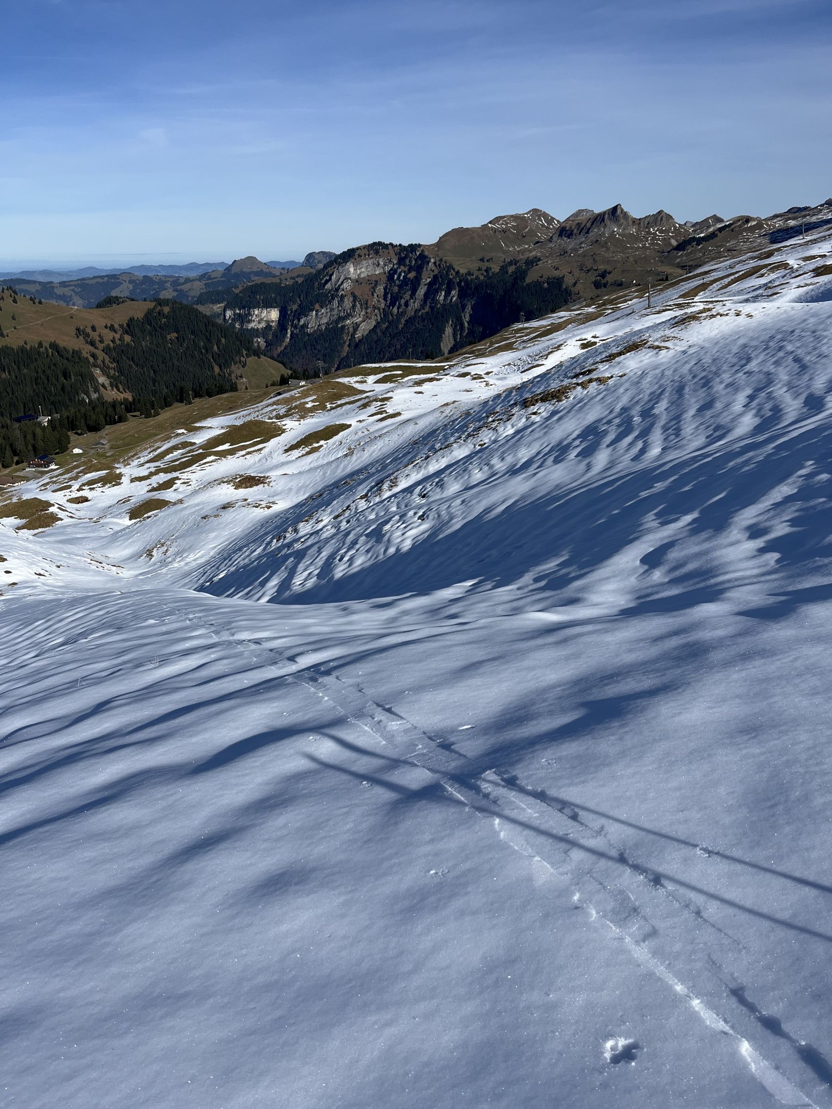 Nun mit Ski durch die NW-Hänge zum P. 1793 und weiter dem W-Grat entlang via Wildä Maa zum Chli Stärnen.