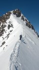 Aufstieg problemlos, letzter Hang vor dem Skidepot mit ca. 20 cm "Neuschnee" - es hat in der vorhergehend Nacht stark gestürmt. Blockgrat problemlos zum Klettern mit Steigeisen.