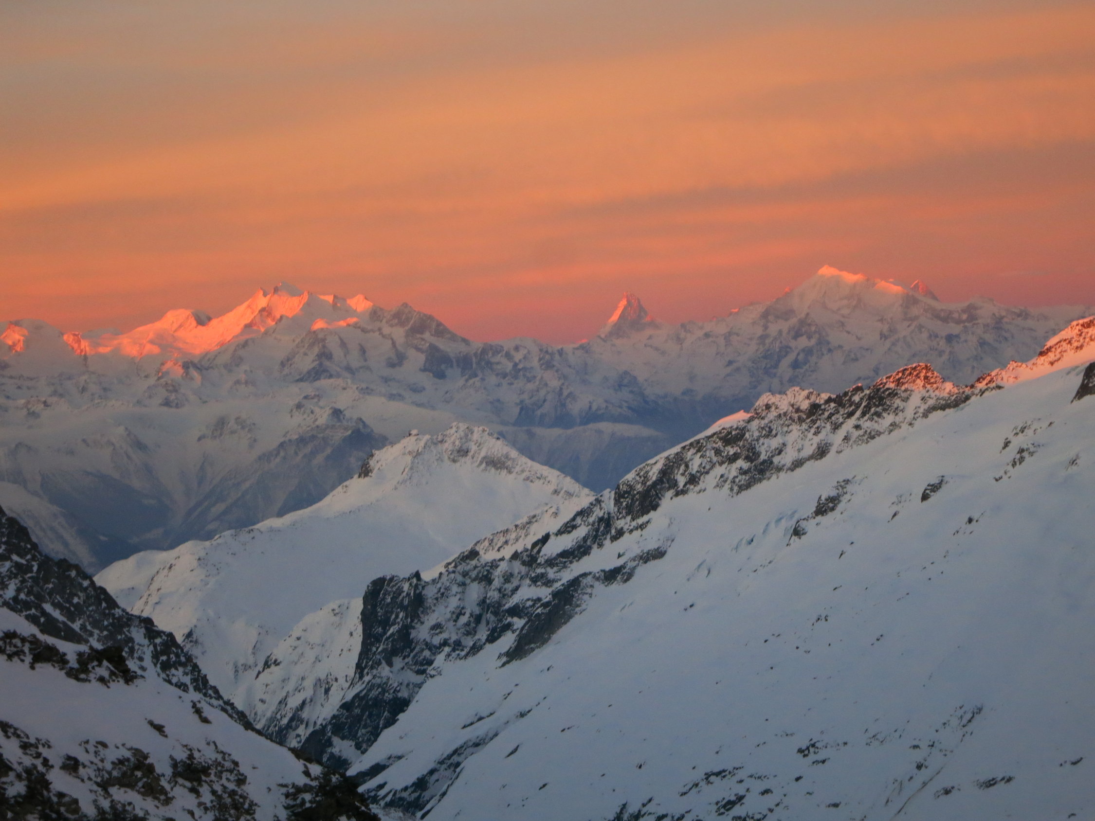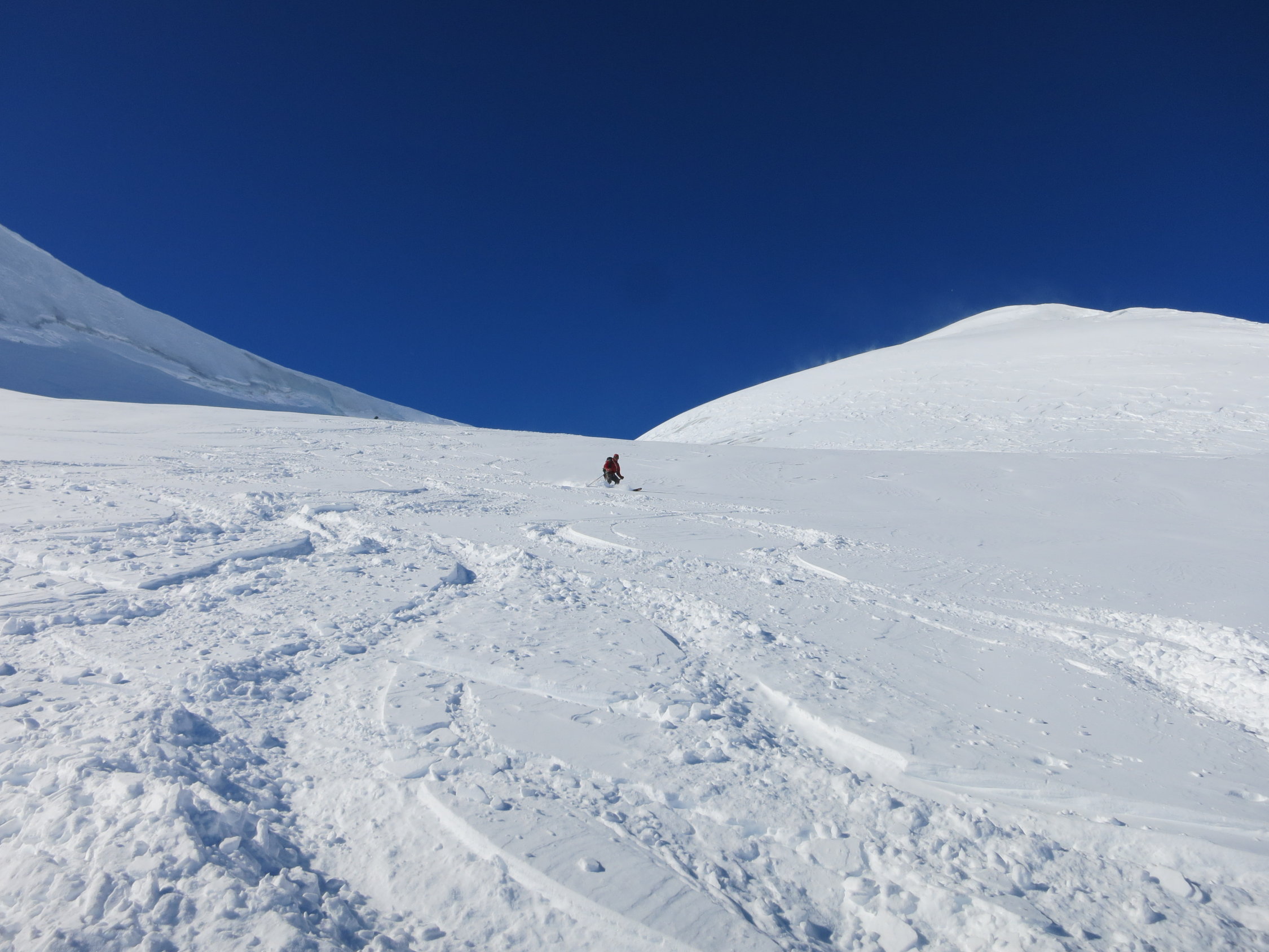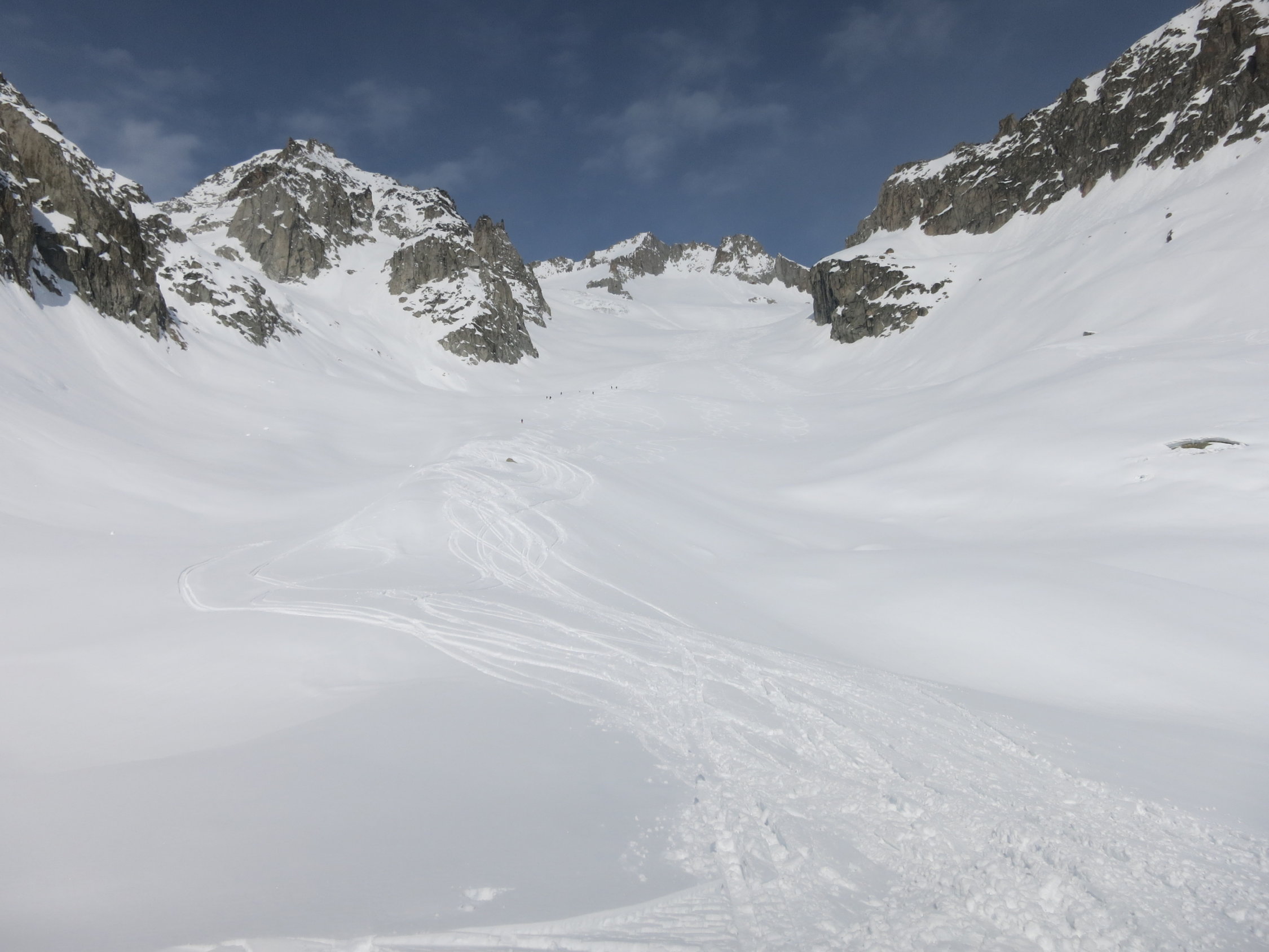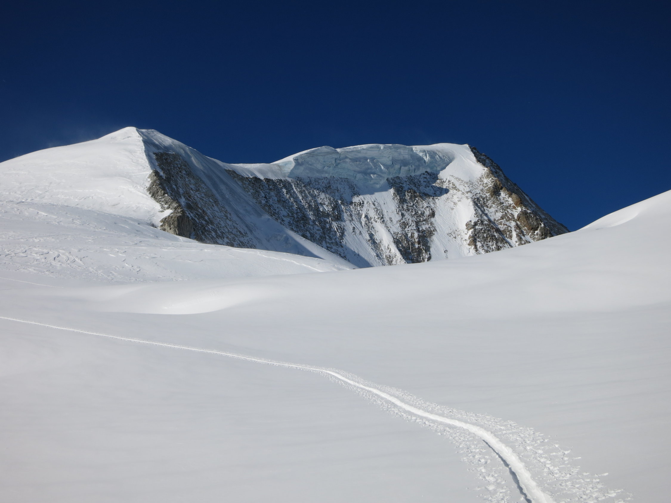 3 Tage Ostertour von der Mönchsjochhütte.Den Plan, das Gross Grünhorn zu besteigen haben wir am Freitag wg. White Out fallen gelassen und sind normal über den Konkordiaplatz und die Grünhornlücke zur Finsteraarhornhütte gegangen. Die Lücke war zur Finsteraarhornseite sehr gut zu fahren dank frischem Pulver. Die andere Seite noch recht ruppig. Am Samstag Aufstieg bis auf den Grat zum Gross Wannenhorn. Den Gipfel haben wir wg. starken Wind ausgelassen. Ander Gruppen haben die Ski aufgebunden und sind weiter bis zum Gipfel. Abfahrt top nach ca. 10 cm Neuschnee in der Nacht zuvor. Am selben Tag bis zur Oberaarjochhütte in guter Spur vom Morgen. Nette Hütte mit toller Aussicht. Sonntag dann übers Galmihorn in guten Verhältnissen bis nach Reckingen. Die Aufstiegstraverse zur Bächlilücke war teilweise etwas rutschig im griesigen Schnee, mit Harscheisen baer gut machbar. Gipfel dann mit Steigeisen. Abfahrt runter nach Reckingen super. Oben Pulver, unten Sulz bis ins Dorf.