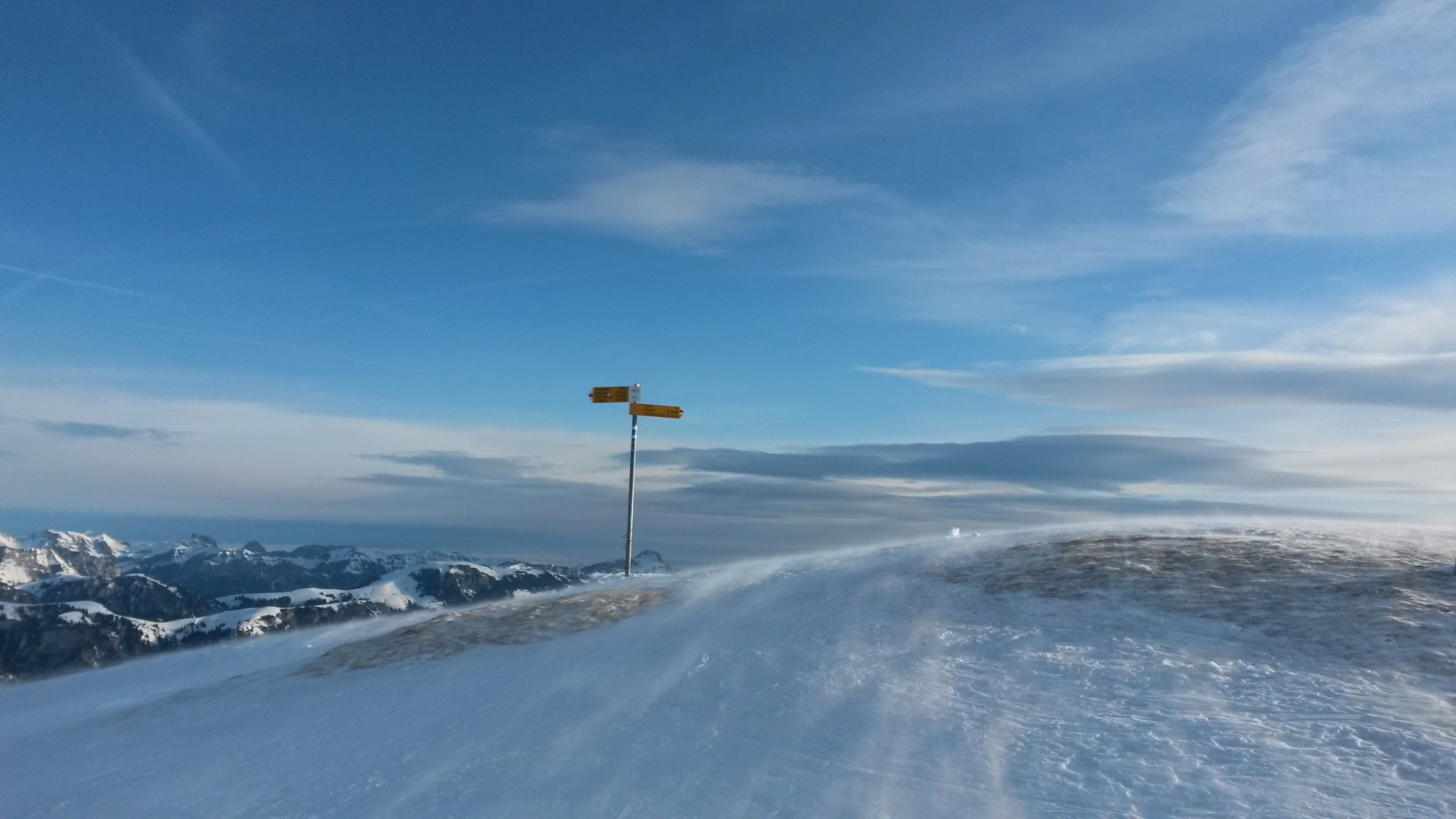 Ab Grimmifurgi starker Wind, Tendenz zunehmend, auf dem Gipfel schon bald stürmisch.