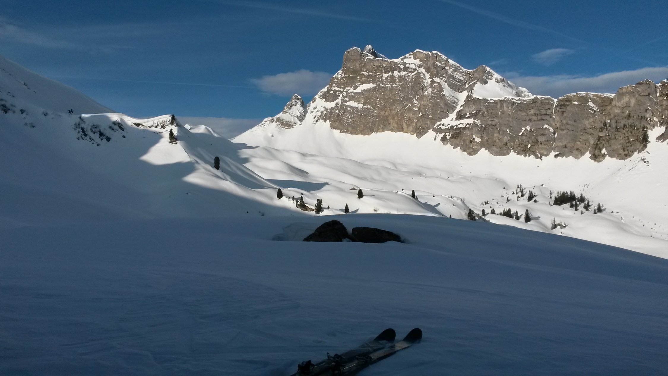 Dank dem Schneefall von gestern super zu fahren, bis Grimmifurgi ein bisschen abgeblasen. Weiter schöner Pulver.