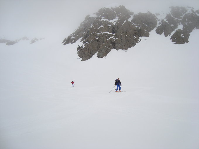 Der Rossfirn selbst grad noch schön von der Sonne angesulzt, nun leider schon wieder gedeckelt- etwas mühsam zu fahren und diffuse Lichtverhältnisse.