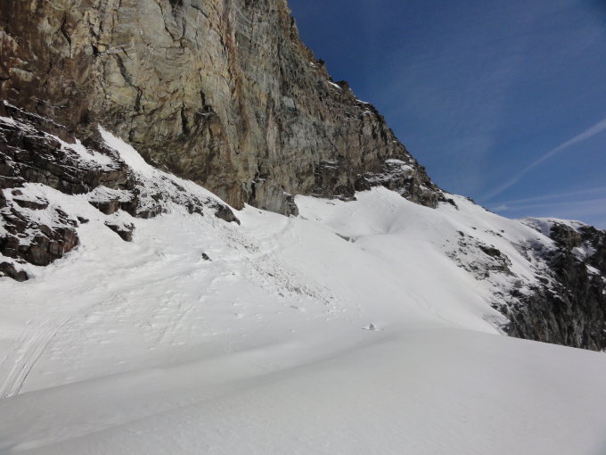 Hohlaubgletscher: So weit ersichtlich gut eingeschneit. Traverse zu Sporn teilweise hart. Dank dem verblasenen und bereits gesetzten Schnee aber gut machbar.