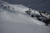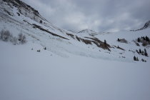 Ganze Route durchgehend eingeschneit und befahrbar. Heute morgen um 7 Uhr im vorderen Fildrich +5°C. Bei Rückkehr um 10:15 Uhr +12°C. Schneedecke durchweg nicht tragend bis auf 1900 müm. Von der Galmschibe sind viele Nassschneerutsche abgegangen. Auch der steile Südwesthang welcher den Weg ins Obertal säumt war mit einigen Anrissen gespickt und in Bewegung. Dasselbe im Nordwesthang Richtung Otterepass. Eine defensive Routenwahl ins Obertal war heute nicht möglich darum habe ich die Tour abgebrochen. Abfahrt anfangs nasser Sulz fahrbar. Ab Mittelberg immer mehr Sumpf ähnlich. Steiboden nur noch knapp fahrbar.