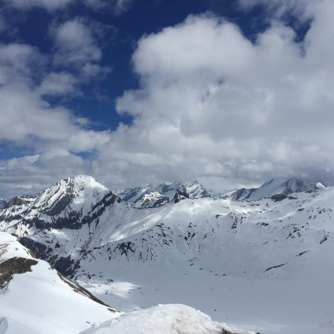 War nicht so einfach heute, die Tourenwahl. Nachts bewölkt = keine Abstrahlung, also in tieferen Lagen Pflutsch, und in höheren Lagen war ja Föhnsturm angekündigt. Ich entschied, mal auf die Engstligenalp zu gehen und dann zu schauen. Angesichts des Windes, der bereits auf Höhe Bergstation herrschte, war schnell klar, dass heute ein defensives Ziel anzugehen war, Wildstrubel möchte ich an einem stabilen Tag machen, und auch das Tierhörnli schien mir zu sturmexponiert. Also Richtung Ammertenspitz. Problemloser Aufstieg bis kurz vor den Ammertenpass, dort wurde dann aber der Sturm so stark, dass ich auf dem Grat Richtung Gipfel umkehren musste. Ich hatte Mühe, auf den Beinen zu bleiben. Also retour bis unterhalb Ammertenpass, und dann liess der Wind ein bisschen nach, daher versuchte ich, via Ostgrat (also andere Seite) den Gipfel zu erreichen. Das gelang in einer Phase mit relativ wenig Böen, was mich natürlich freute. Dann schnell wieder runter, zum Verweilen lud der Gipfel nicht. Die Abfahrt war im Gipfelhang sehr schön, feuchter, aber tragender Schnee, und das ging etwa bis 2200 MüM mit hübschen Schwüngen weiter. Von da an stark bremsend, was natürlich die Rückkehr zur Engstligenalp nicht verschnellerte :-).