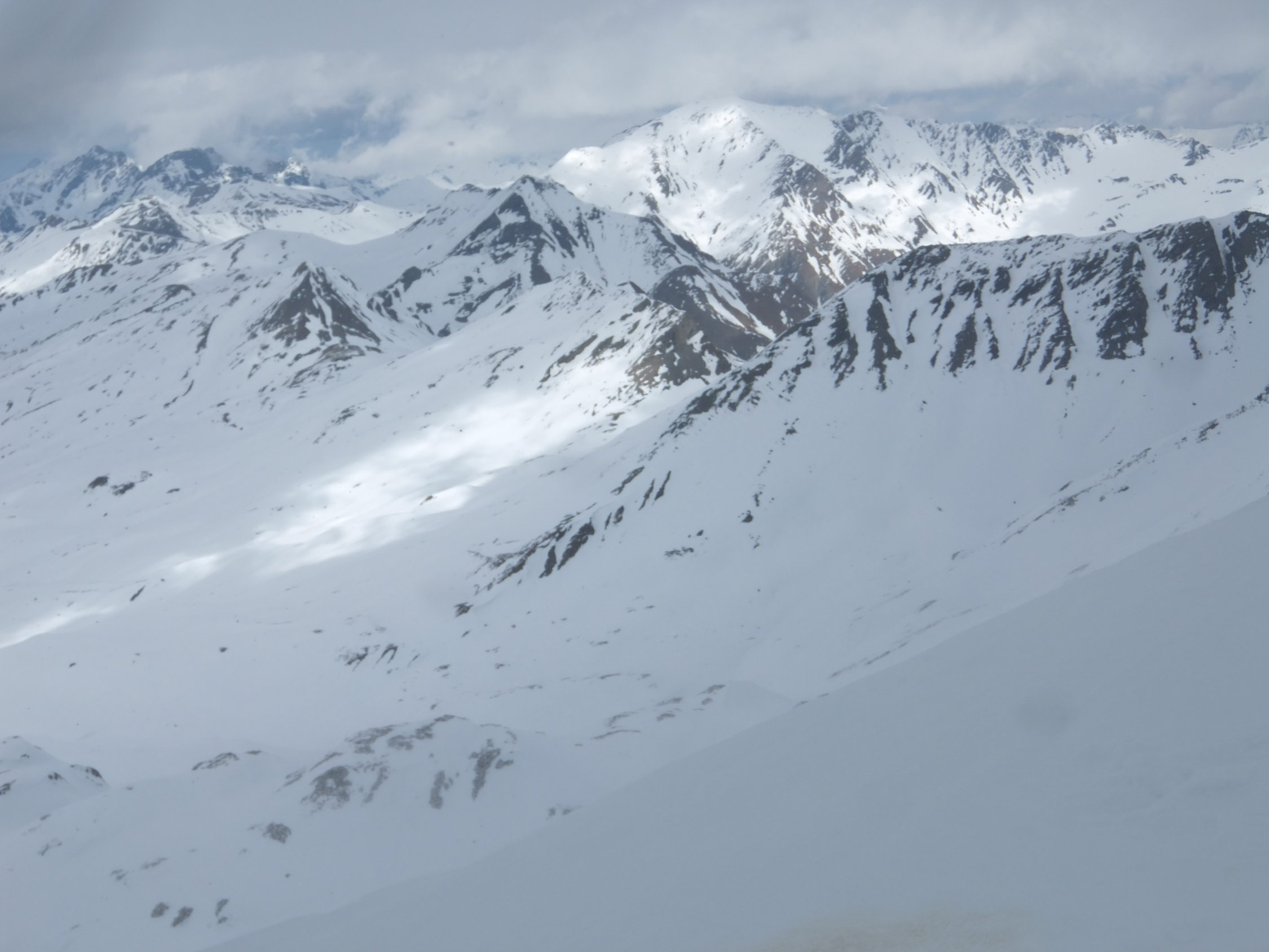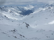 Starker Wind, Tasnagipfel war in den Wolken. Schechte Sicht (kaum Kontrast) und ein Wechsel zwischen Bruchharsch, windgepresstem Schnee und Triebschnee bei der Abfahrt.