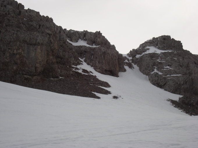 Achtung, beim Ausstieg aus der Rinne lauert eine heimtückische Wächte, welche man erst von oben als solche erkennt!