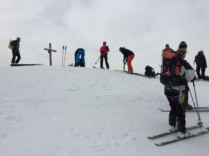 Vom Fisetenpass bis Gemsfairen hart und verblasen, Harscheisen stellenweise angenehm. Abfahrt zum Claridenfirn ruppig und nicht aufgesulzt. Claridenfirn gut eingeschneit. Schneedecke sehr vom Wind gezeichnet. Gipfelhang zum Clariden im oberen Bereich hart und abgeblasen, auch hier Harscheisen hilfreich. Am Gipfel und am Grat stürmischer Wind. In den Felsen am Grat eher wenig Schnee, Ketten frei. Abfahrt bis Iswandli ruppig wg. grosser Zastrugis. Weitere Abfahrt zunehmend matschig, da die Schneedecke nachts nicht durchgefroren war. Schnee fast noch bis Urnerboden.