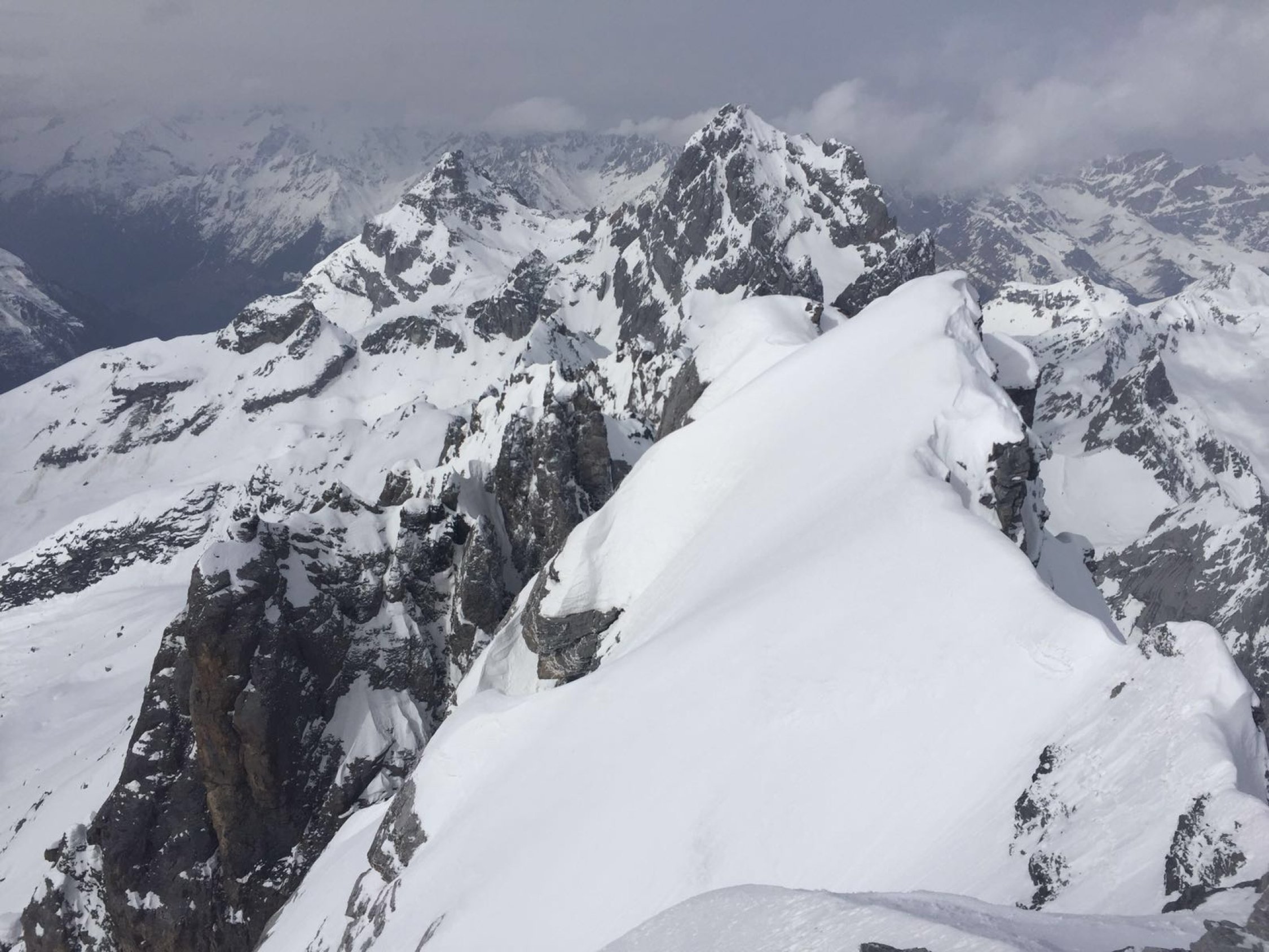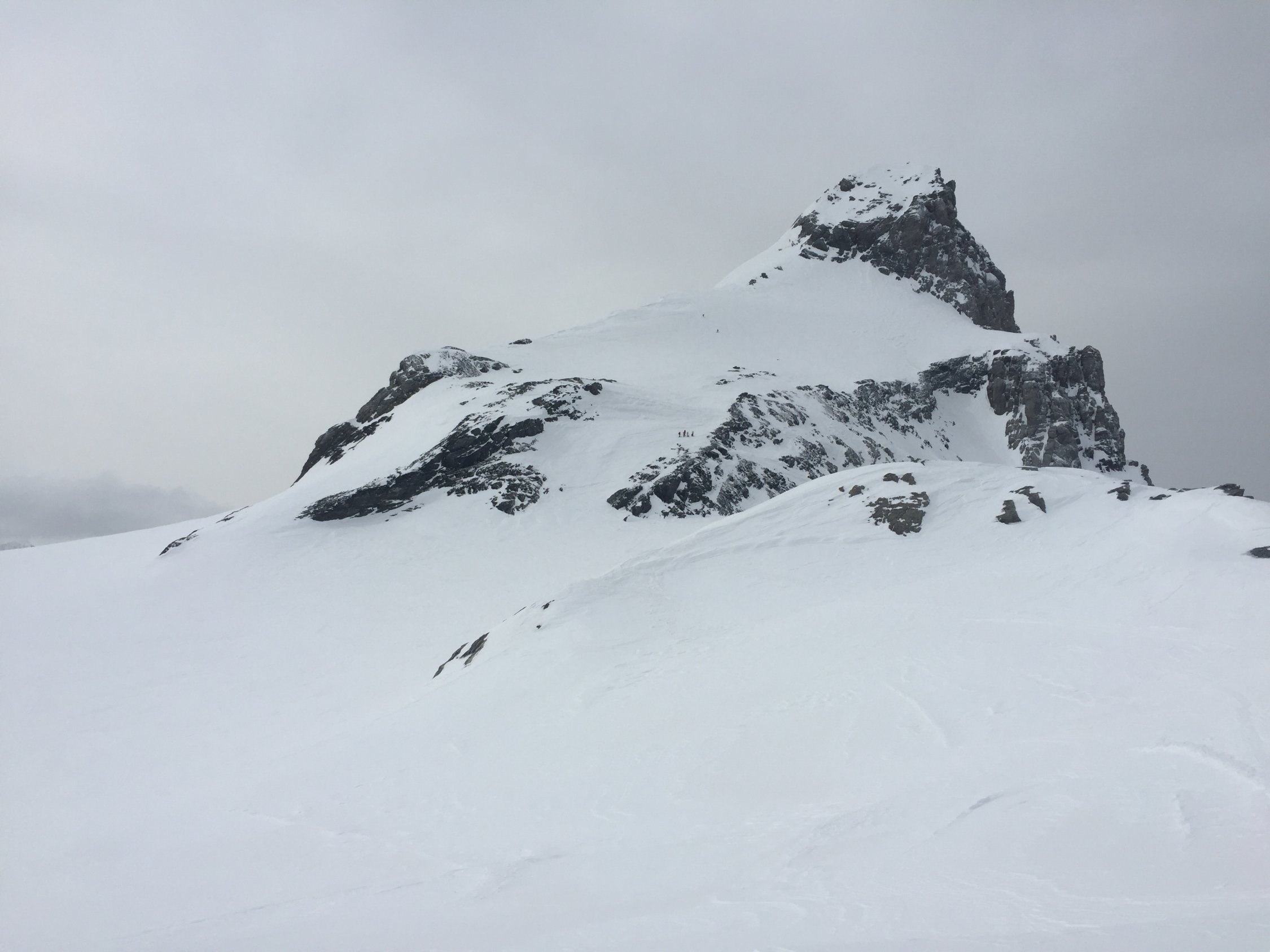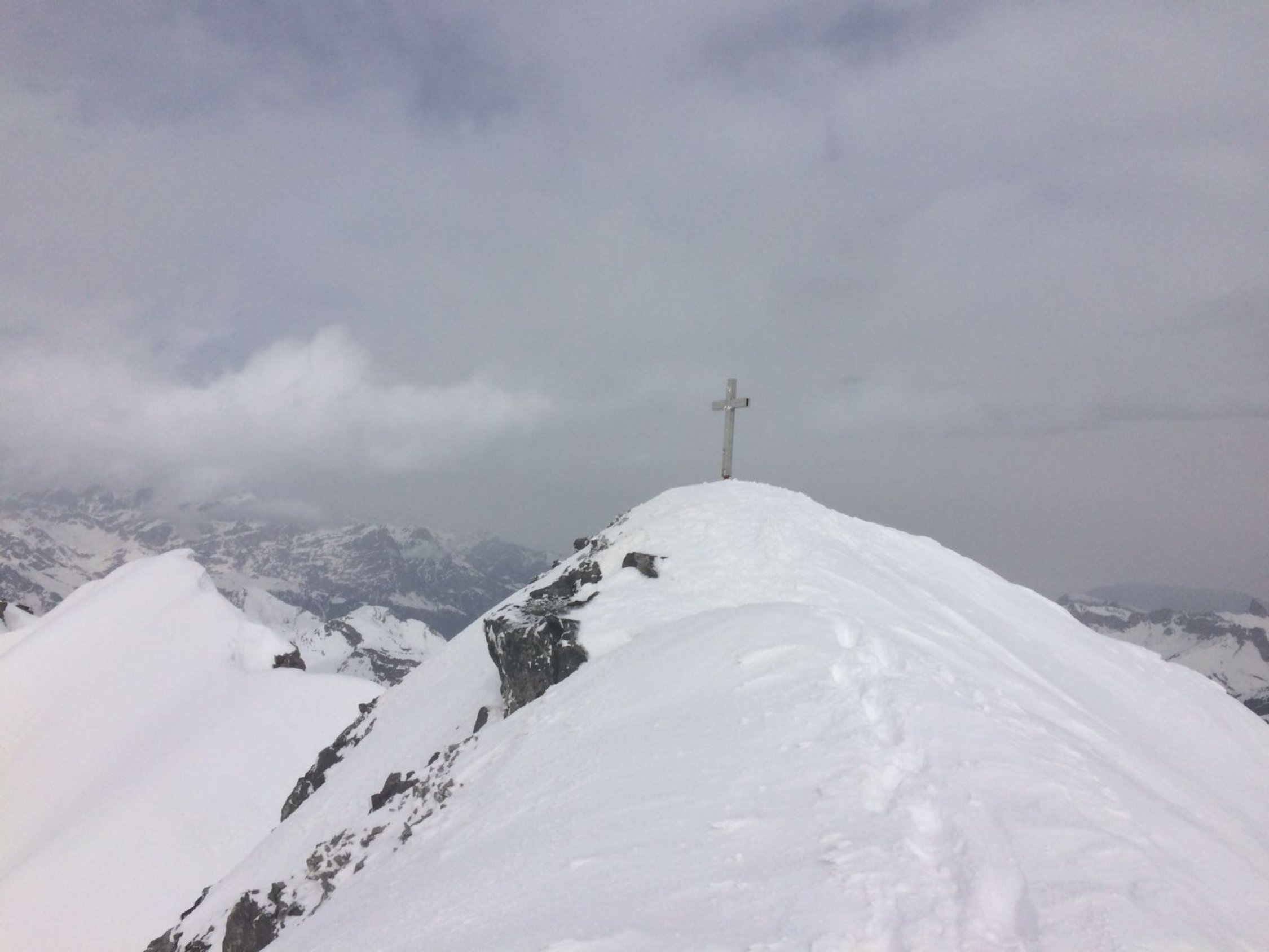 Nach der Ruchenchälen 2612 m hatten wir starken ruckartigen Föhn. Weiter ging es mit Steigeisen und Pickel gut zum Gipfel. Die Abfahrt war so lala, um 11.00 Uhr hatten wir untere Teil der Chälen schon schön weichen Schnee. Es hat noch genügend Schnee im Gebiet. Heute waren ca. 20 Leute am Berg unterwegs die dem Föhn trotzen.
