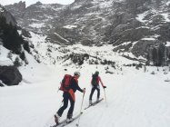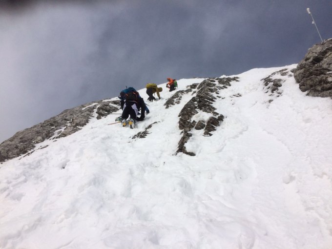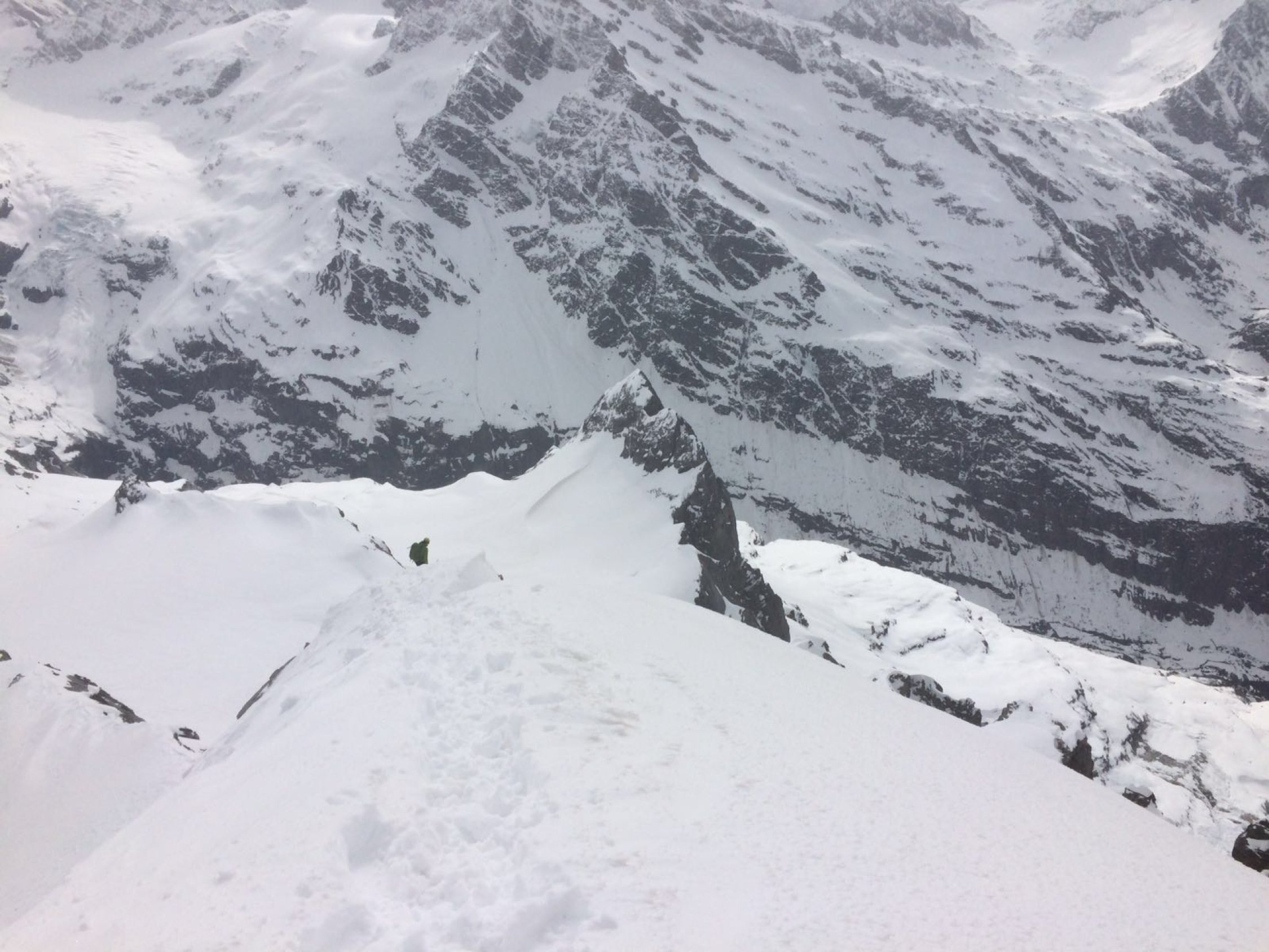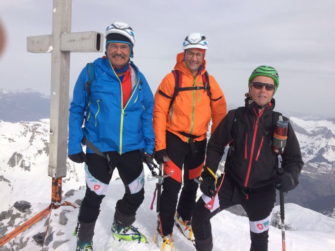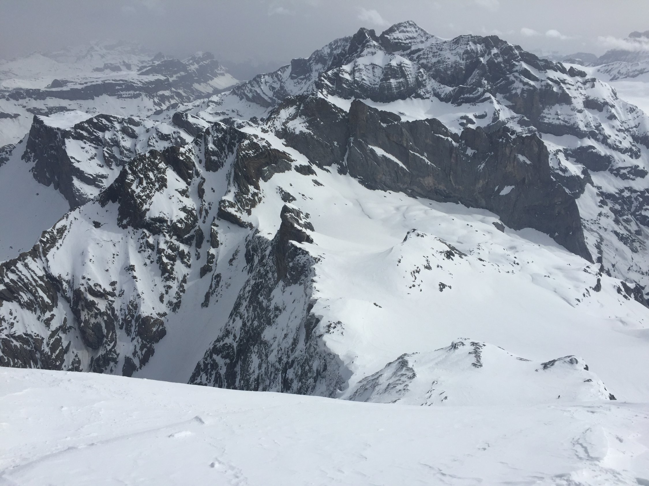 Nach der Ruchenchälen 2612 m hatten wir starken ruckartigen Föhn. Weiter ging es mit Steigeisen und Pickel gut zum Gipfel. Die Abfahrt war so lala, um 11.00 Uhr hatten wir untere Teil der Chälen schon schön weichen Schnee. Es hat noch genügend Schnee im Gebiet. Heute waren ca. 20 Leute am Berg unterwegs die dem Föhn trotzen.