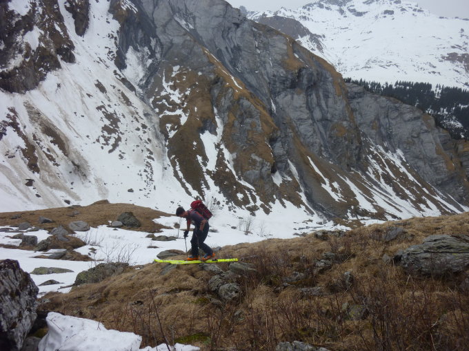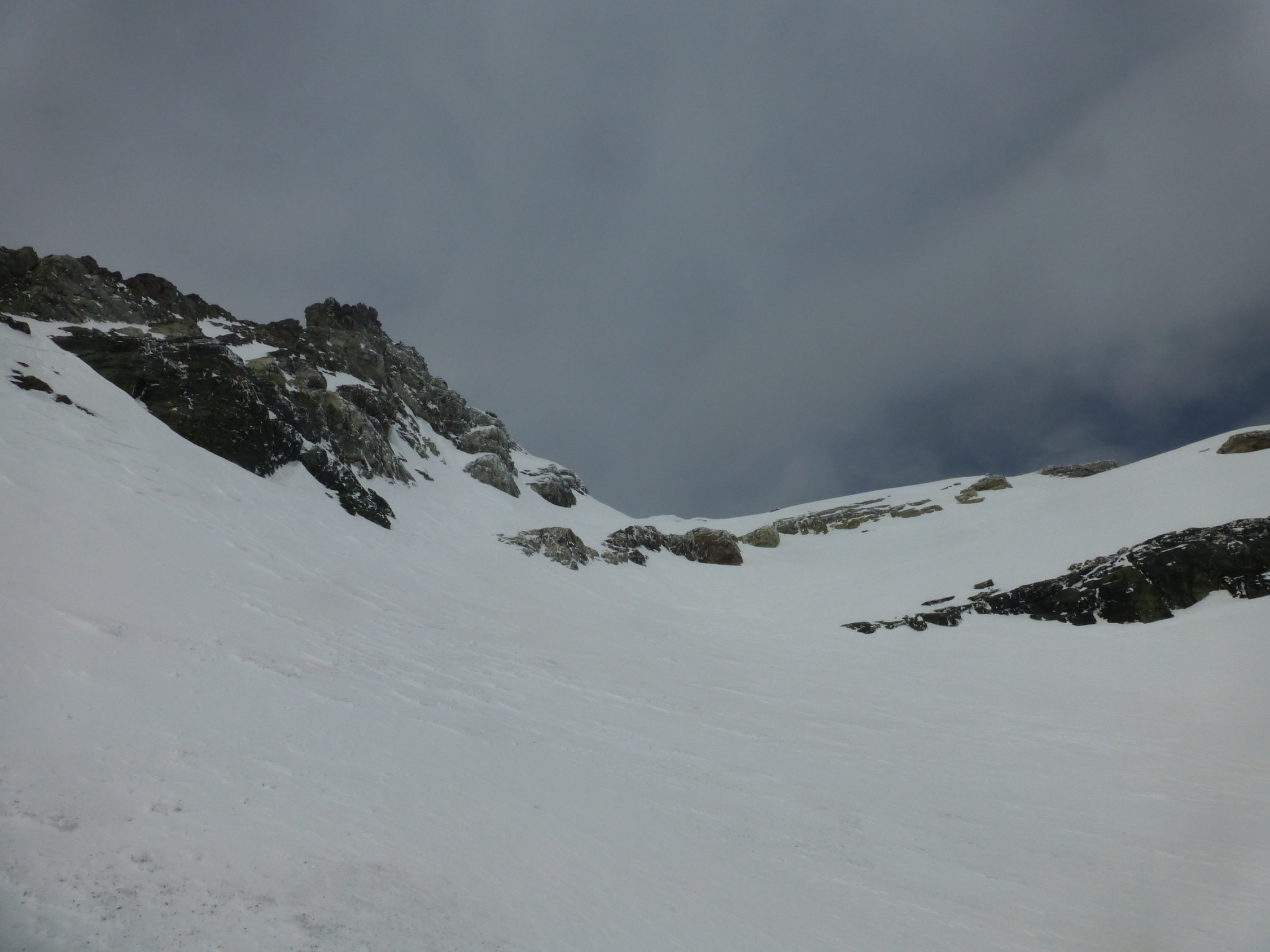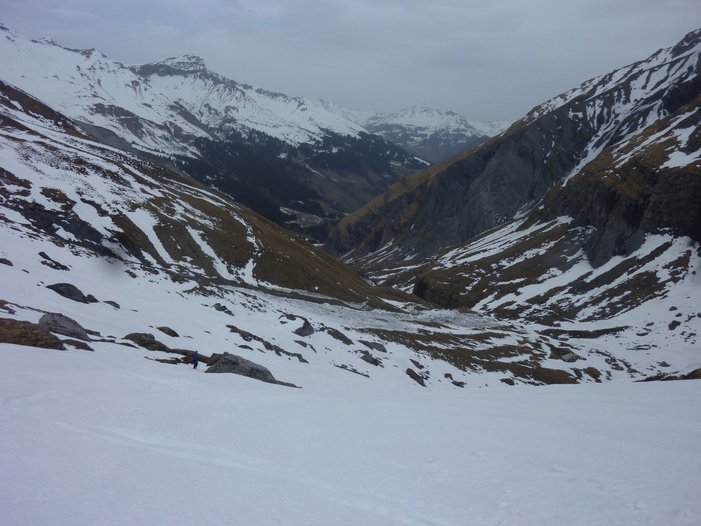 Um 7 Uhr ab Unter Stafel bei schon relativ starken Wind und nassem Schnee. Bis Ober Stafel muss jetzt schon viel getragen werden, es wird nicht mehr lange dauern bis der Schnee ganz weg ist. Ab Ober Stafel geschlossene Schneedecke und gute Bedinungen. Mit Skis bis auf den Gipfelgrat, Harscheisen nicht unbedingt nötig aber doch hilfreich. Auf dem Gipfel fast windstill, eine willkommene Überraschung. In der Abfahrt dann alles: Pulver, windgepresster Schnee, Sulz, Nassschnee, Sumpf. Um 2 wieder beim gut bewachten Auto