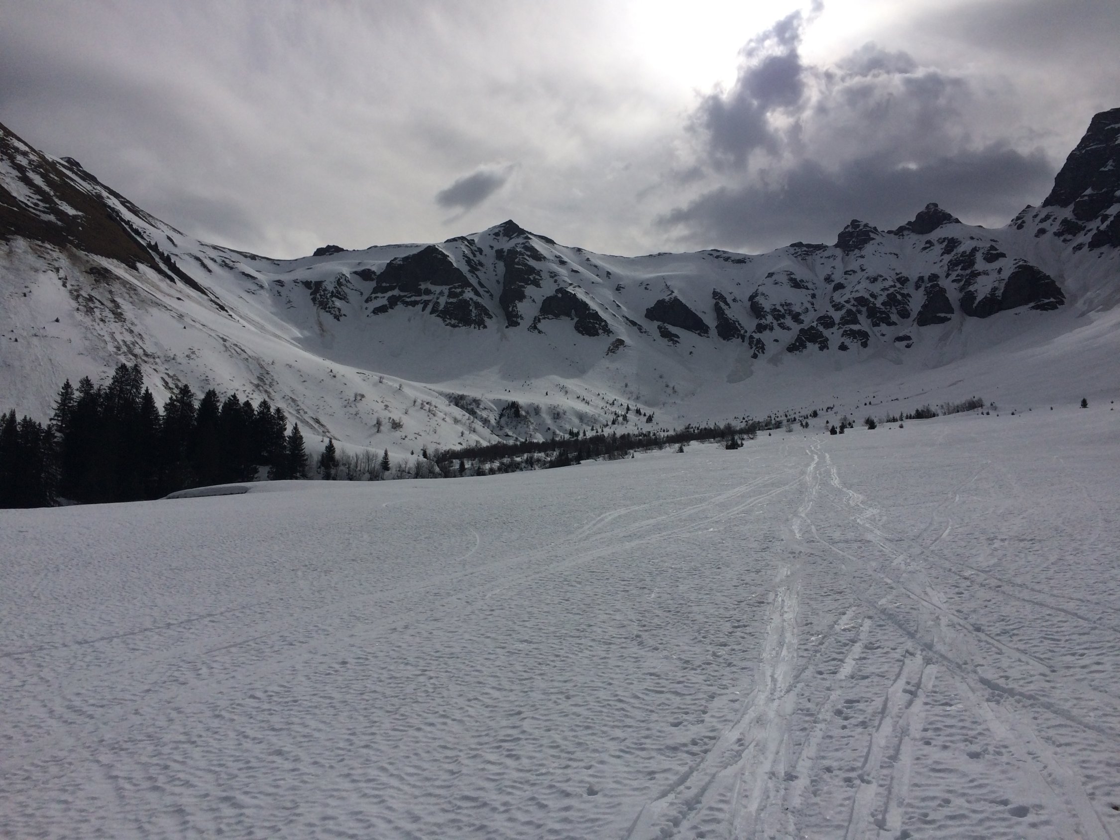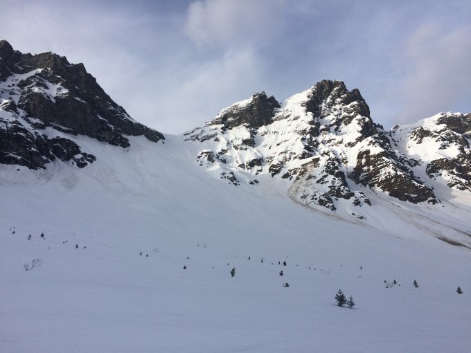 Nassschneelawine schon um 0800 Uhr aus der Gsürseite (Sonne schien in die Seite)