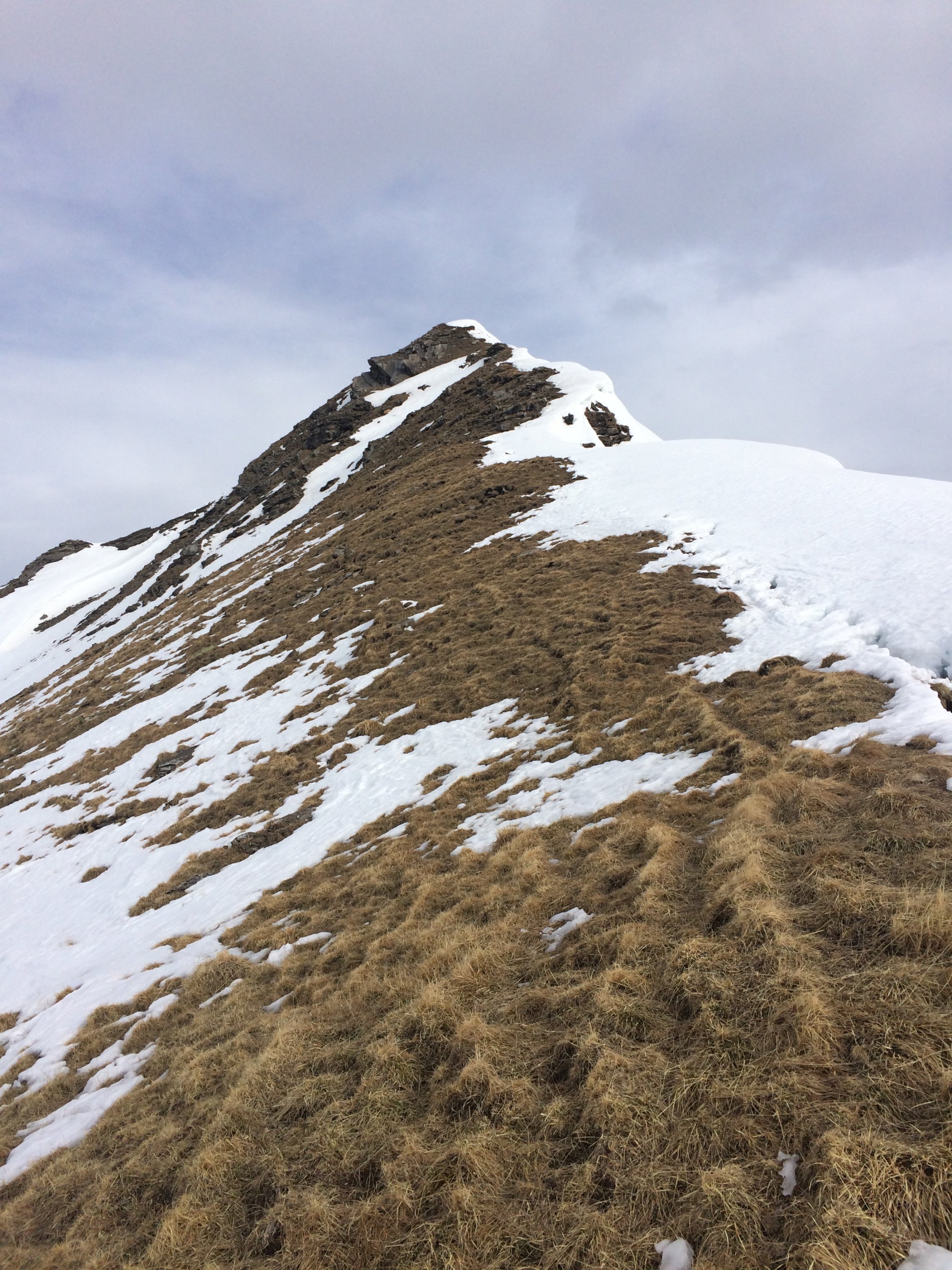 Wie zu erwarten nasser Schnee und nich gefrohren. Ab ca. 2000M.ü.M. dann eine Kruste. Gipfelhang hart. Gipfelgrat aper. Abfahrt oben hart, dann Sulzschnee und im Steinboden musste man es fahren lassen (gab keine Schwünge mehr trotz Ski welche im Service waren).