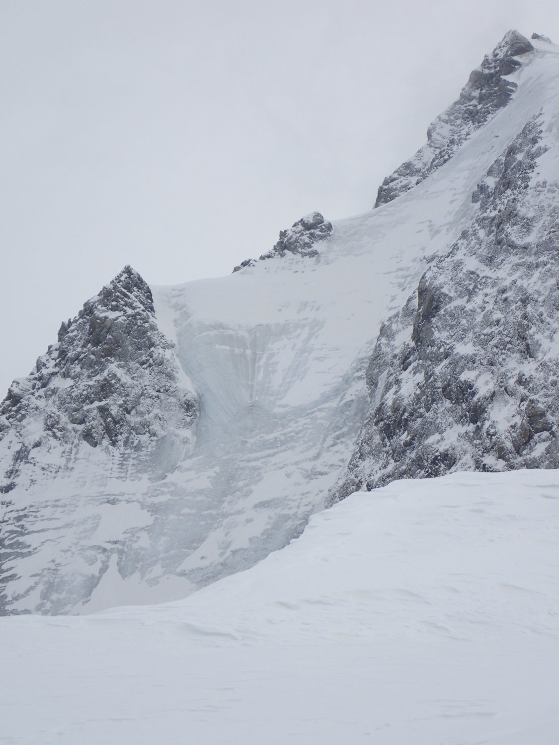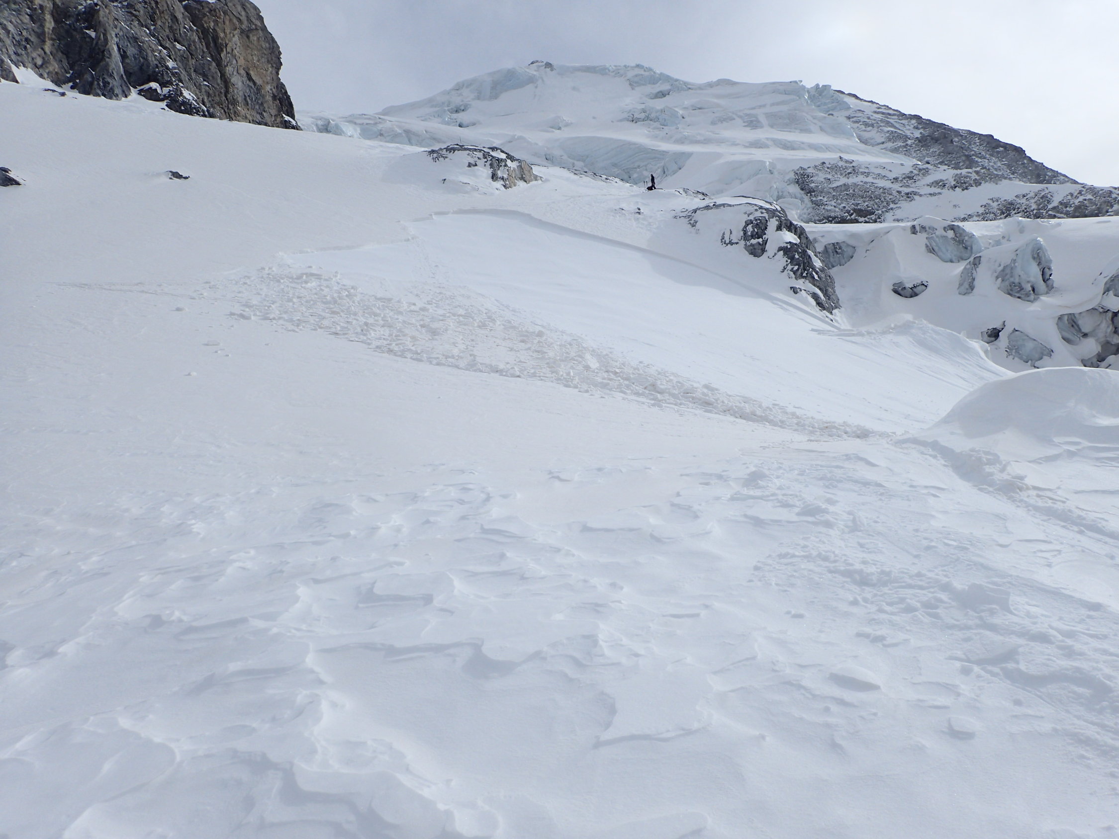 Auslösung eines kleinen Schneebretts auf ca. 3000m (siehe Bild).