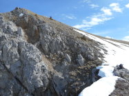 Aufstieg: Die Schneedecke über den Arete du Moelle hat sehr gut getragen. Die letzten 50 Hoehenmeter zu Fuss auf den Gipfel.