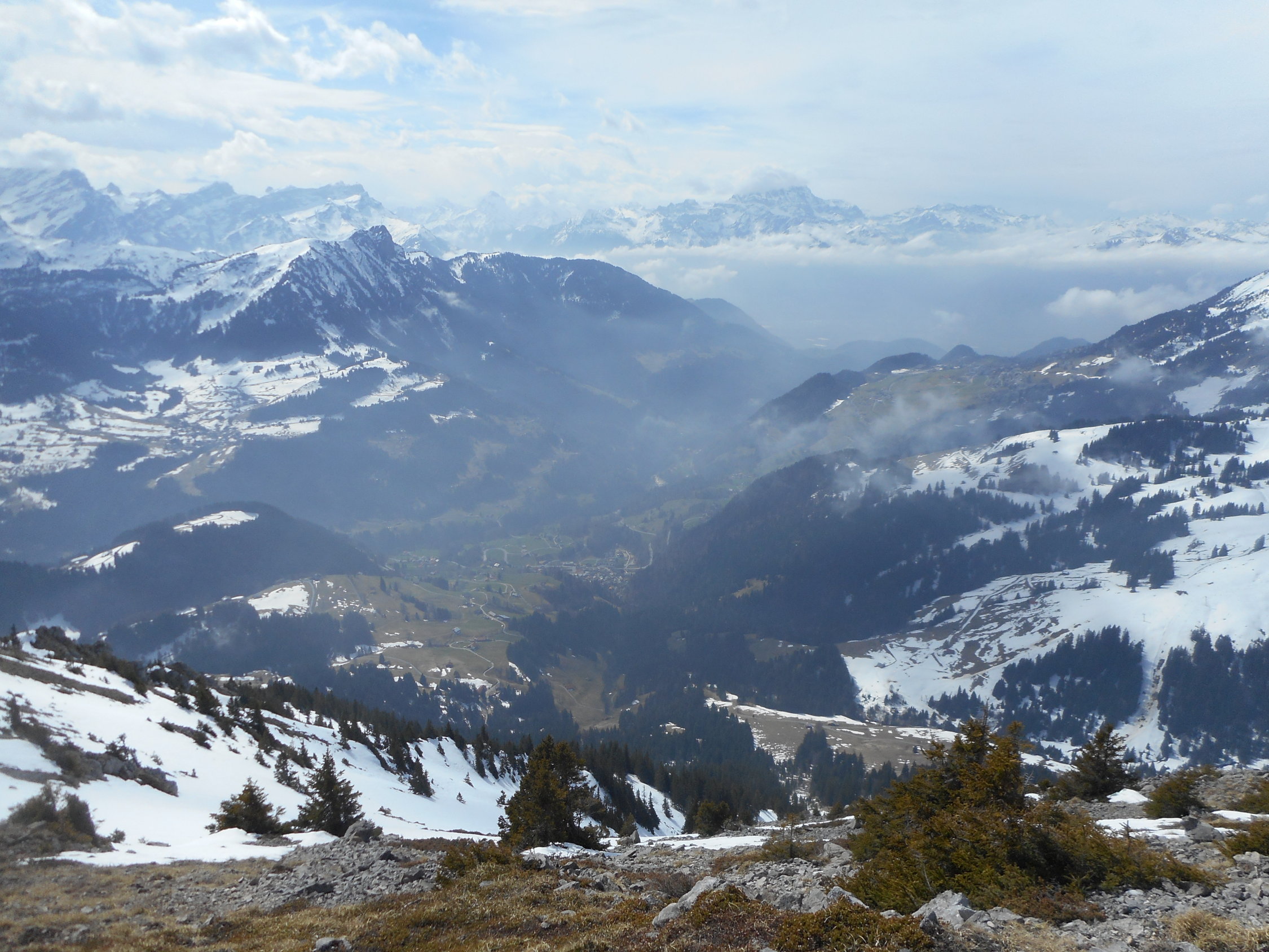 Die Dents du Midis und das Mont Blanc Massiv versteckten sich heute teilweise hinter den Wolken. Der Genfersee war heute nicht zu sehen. Im Osten erkannte man schwach einige Berner Klassiker.