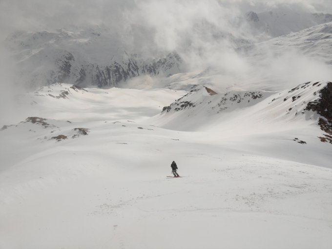 Die Strasse ist von Realp her mindestens bis zur Abzweigung Stotzigen First geräumt, wahrscheinlich noch einiges weiter. Der Schnee war von Beginn weg tragend und sehr griffig. Einige Nebelfetzen trübten am Anfang noch die Sicht, die spielten sich danach umher. Ab 2350 müM. blies ein steifer Wind aus nördlicher Richtung. Abfahrt um ca. 11.15 Uhr war ideal, ein angenehmer Sulz entlöhnte uns, im Mittelteil aber dann leider wieder dicker Nebel der sich wieder verzog. Wenig Leute unterwegs, kein Pulver im oberen Bereich.
