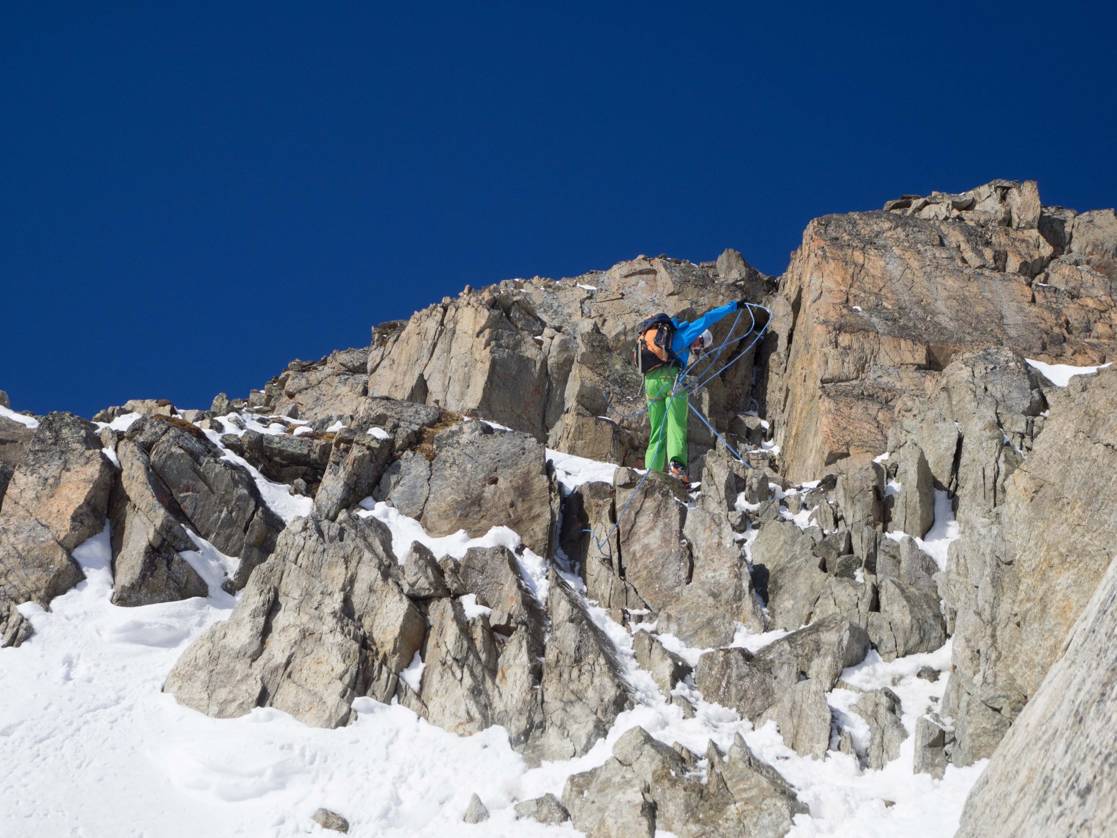 Im Abstieg von Gipfel kann dank der eingerichteten Abseilstellen zügig abgeseilt werden.