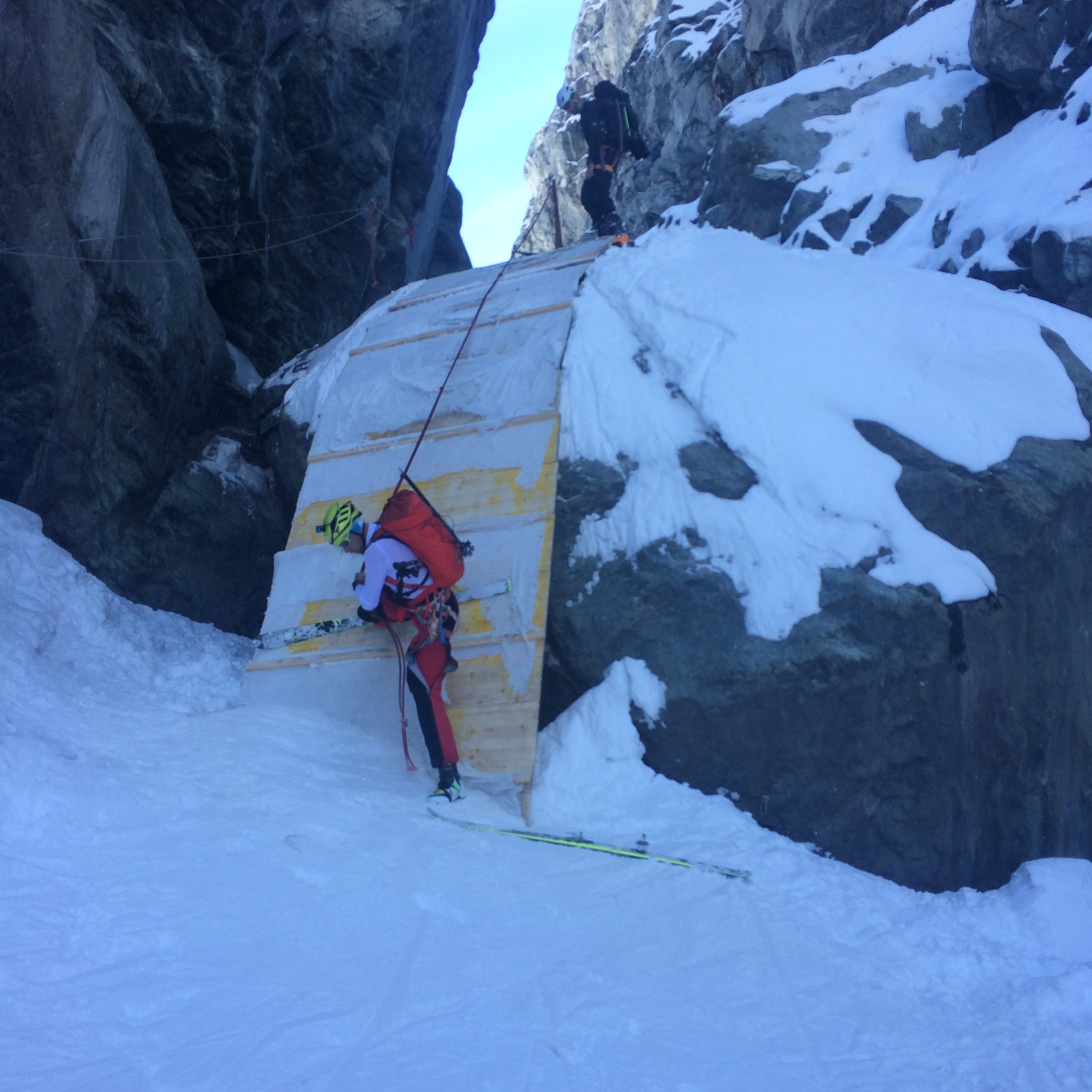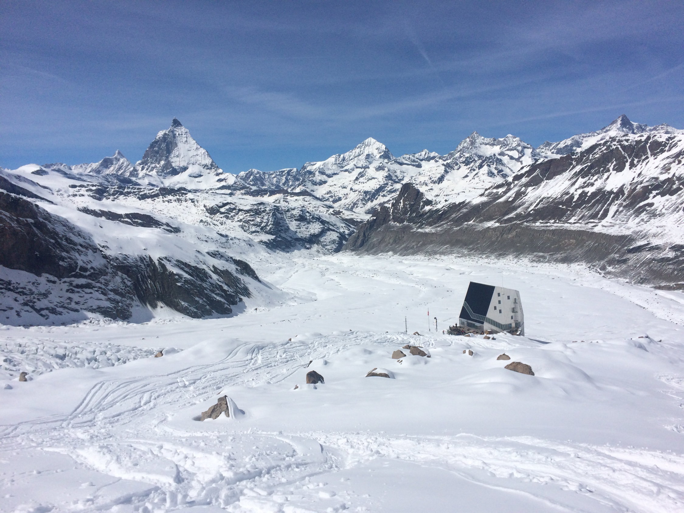Abfahrt in schönem Pulver (unten schnell schwerer werdend) zurück zur Monte-Rosa-Hütte. Weitere Abfahrt über Route 2.14c über den Gornergletscher nach Zermatt. Ohne Steinkontakt ist das nicht mehr möglich, aber gerade noch so machbar.