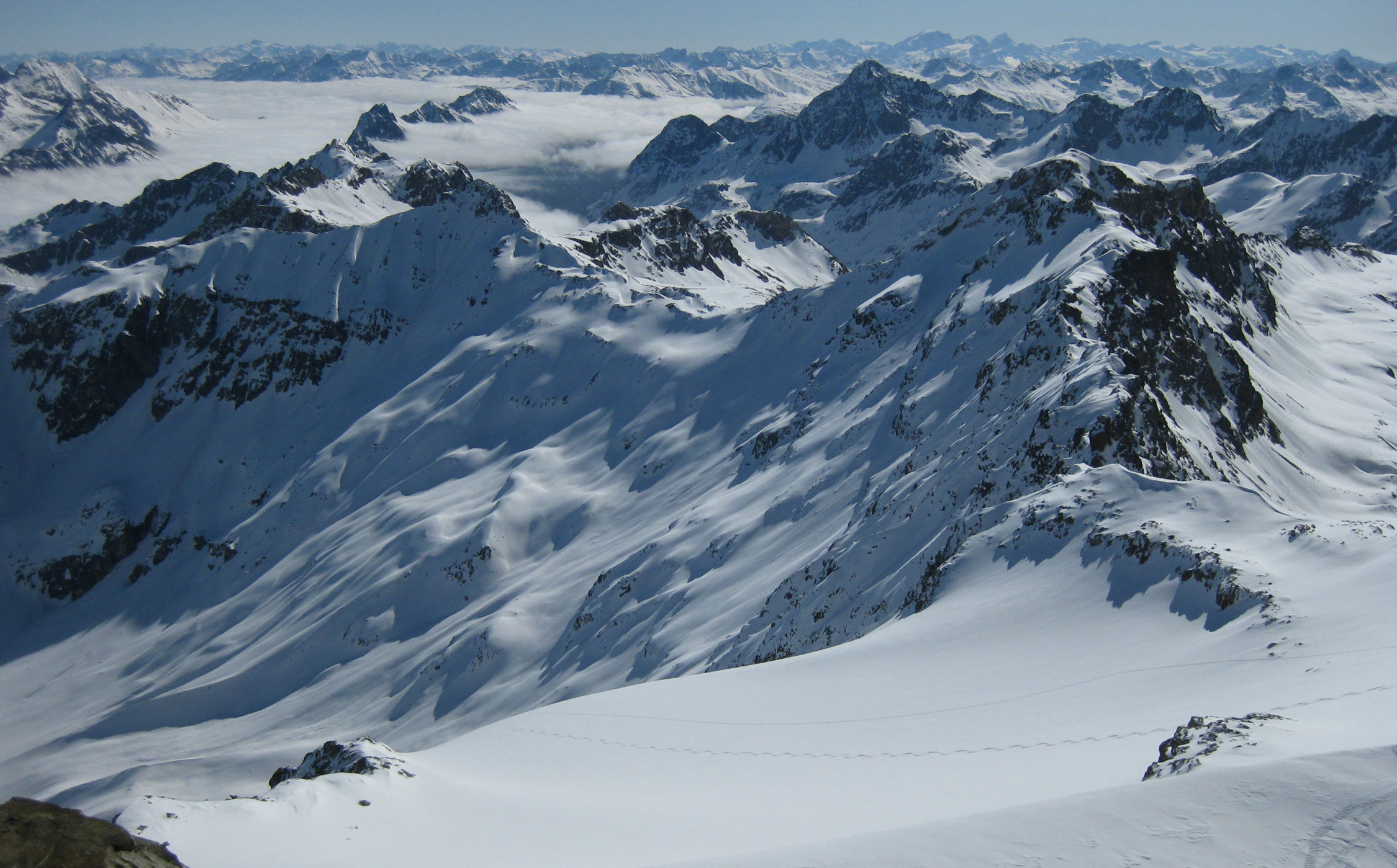 Vom Gipfel sind alle Abfahrten noch gut machbar: