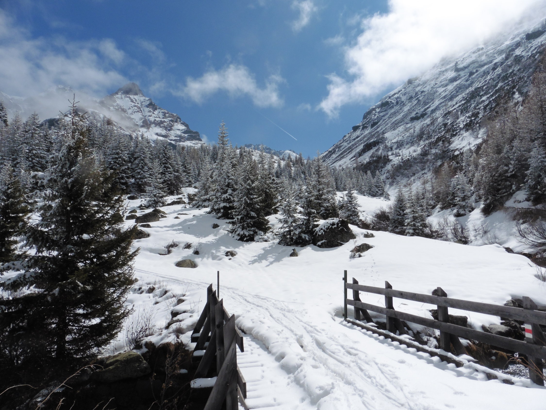Beste Tourenverhältnisse, harte Altschneedecke mit 10 cm Neuschnee.