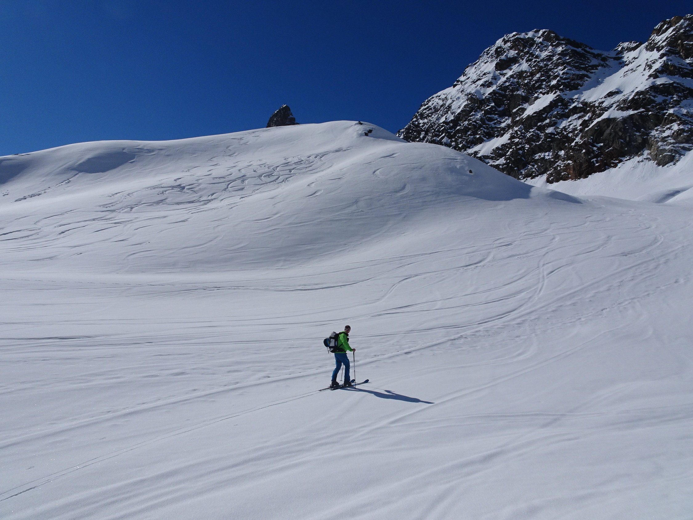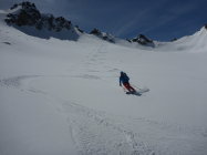 Nun Abfahrt über den Schweizer Gletscher dann über den Kromergletscher und Schwarze Böden retour zum Ausgangspunkt