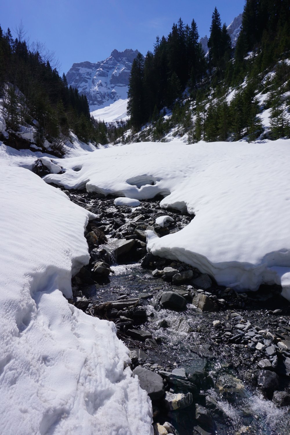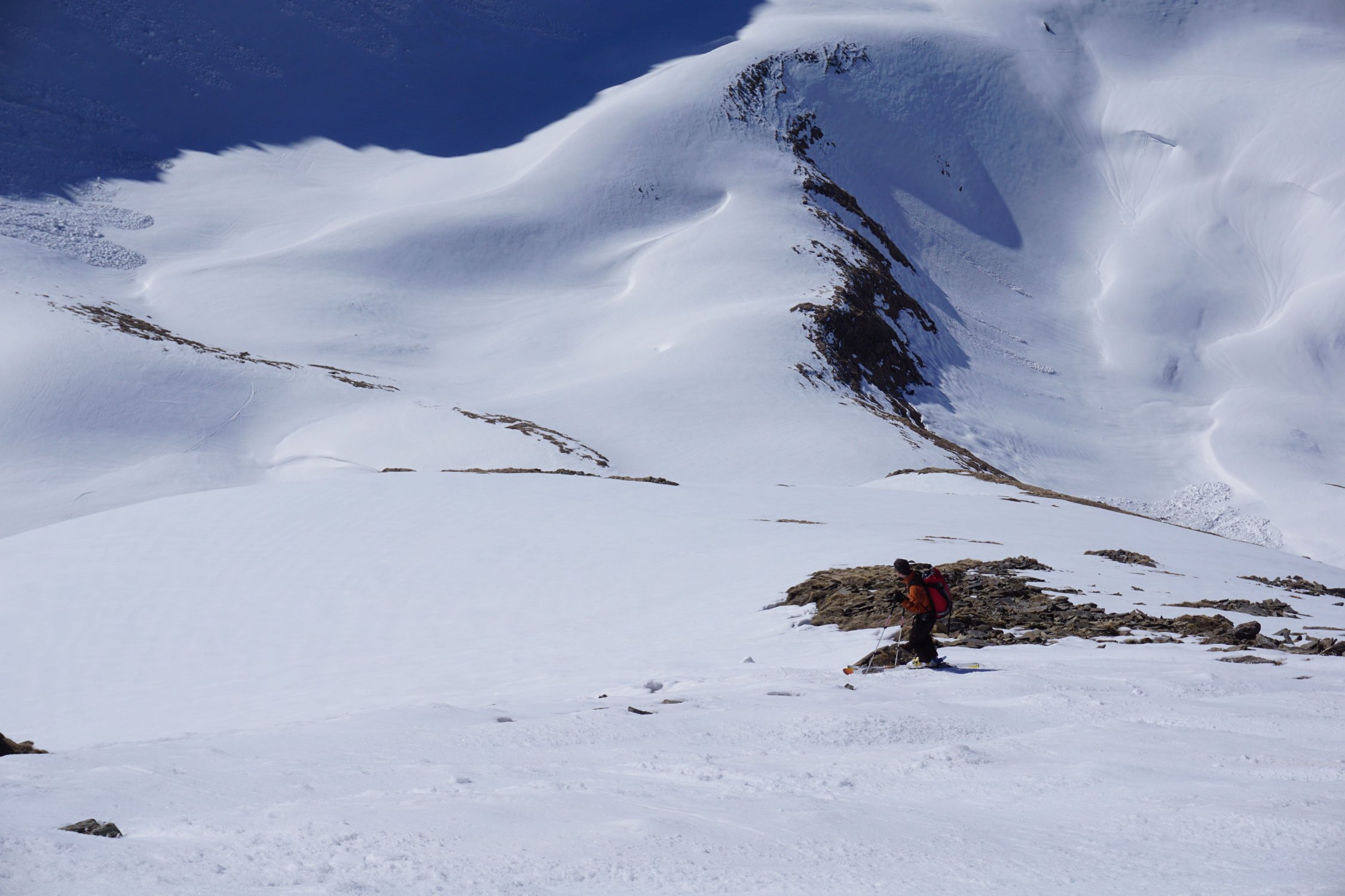 gut verfestigte, gefrorene Schneedecke, Abfahrt 11 Uhr für oberen Teil ok, im unteren Teil noch etwas zu früh. Abfahrt über die Aufstiegsroute. Eine tolle Frühlingstour in perfektem Sulzschnee!