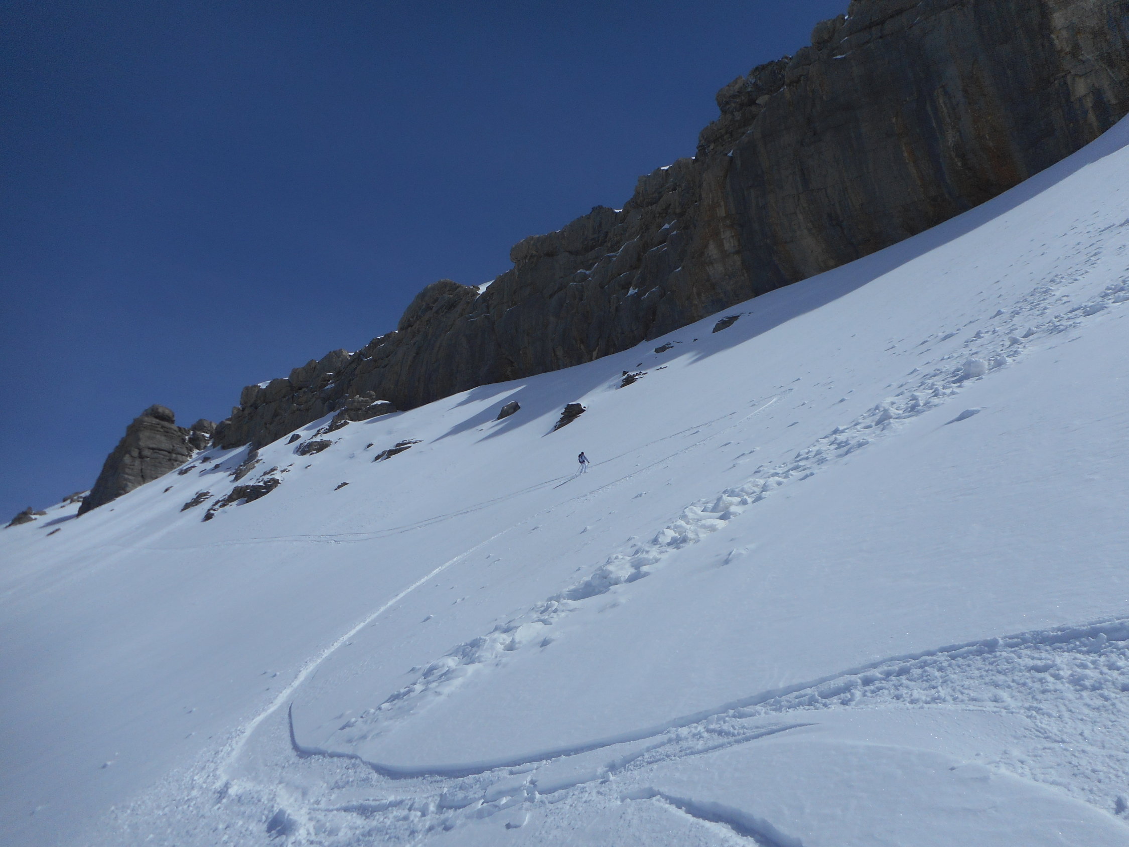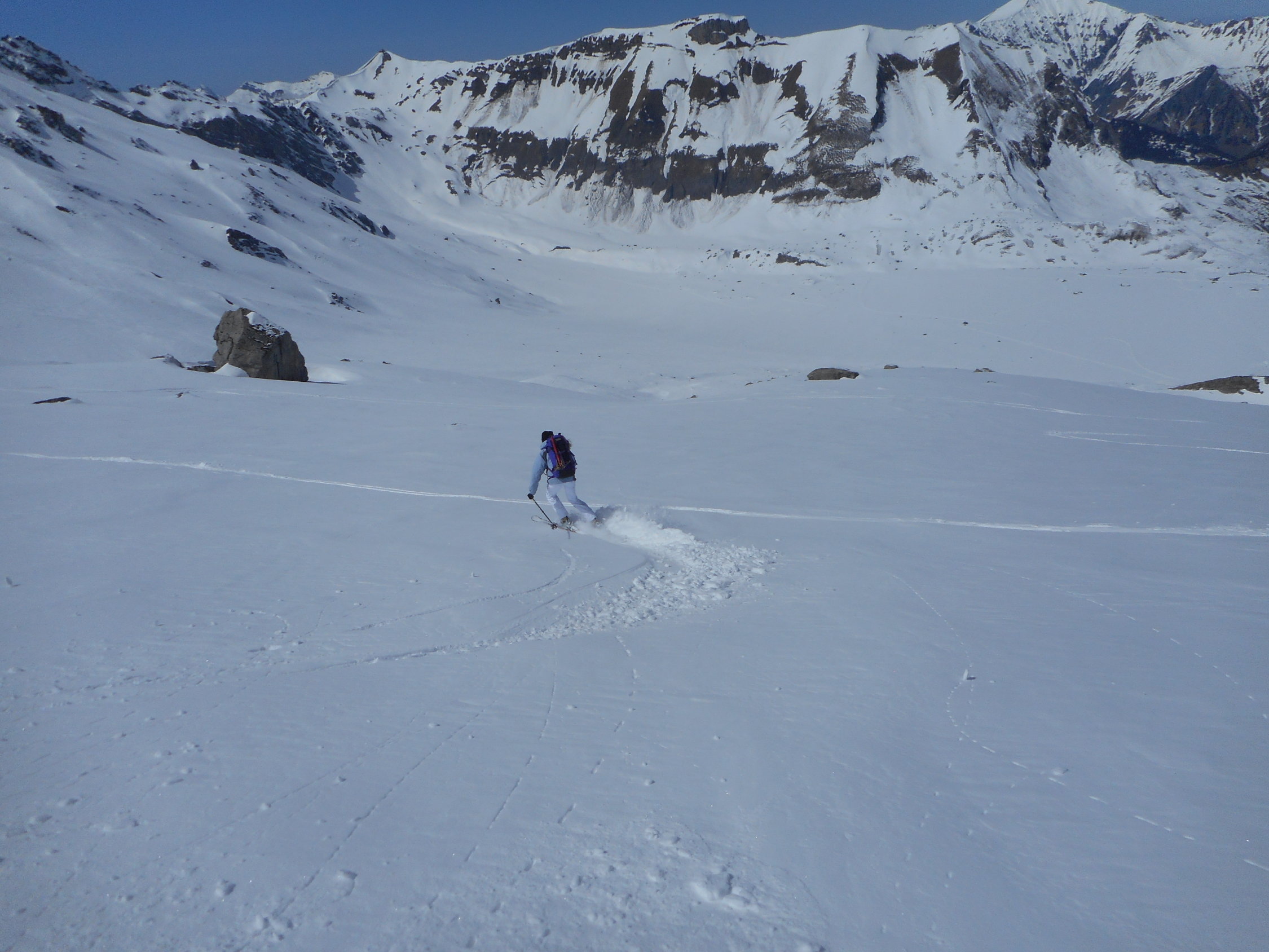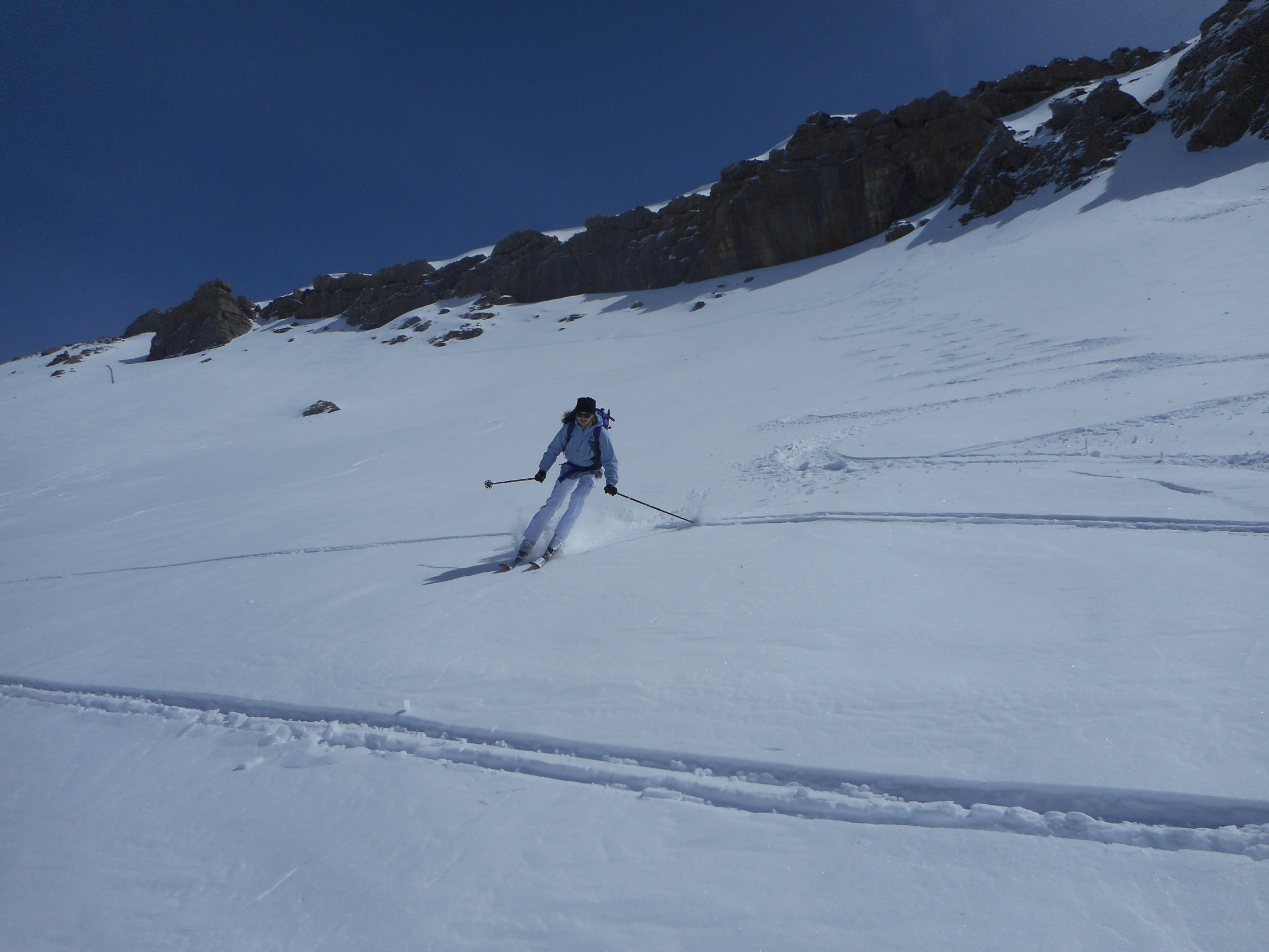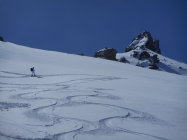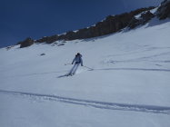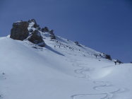 Abfahrt: Hochwinterliche Bedingungen. Einfach top. Es war eine Genuss-Abfahrt auf lockerem Pulverschnee, welcher auf einer tragenden Unterlage lag.