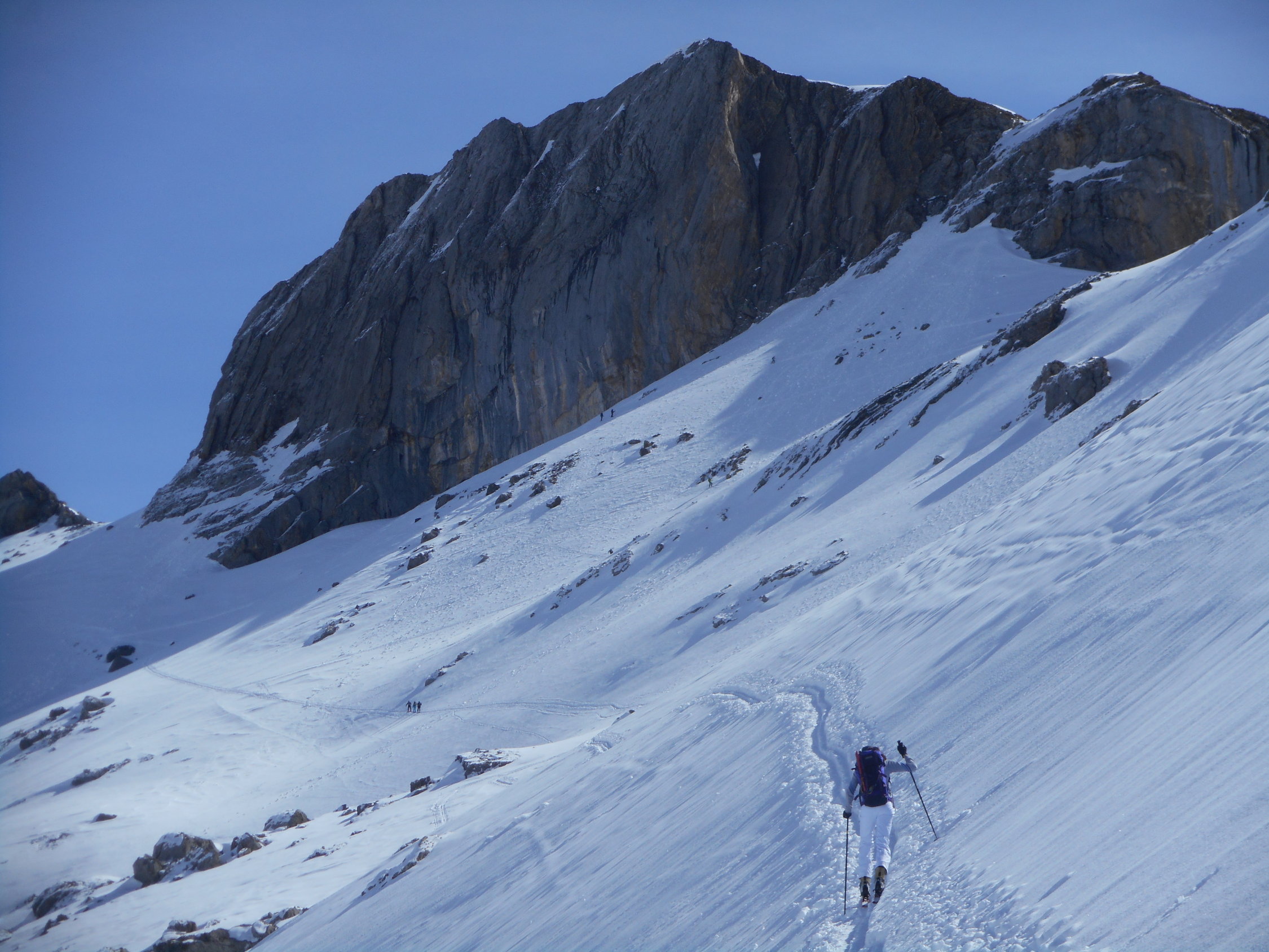 Aufstieg: Danke dem unbekannten Alpinisten für die hervorragende Spuranlage. Es war eine hart gefrorene Unterlage, mit 5 - 10cm feinem Pulverschnee darauf.