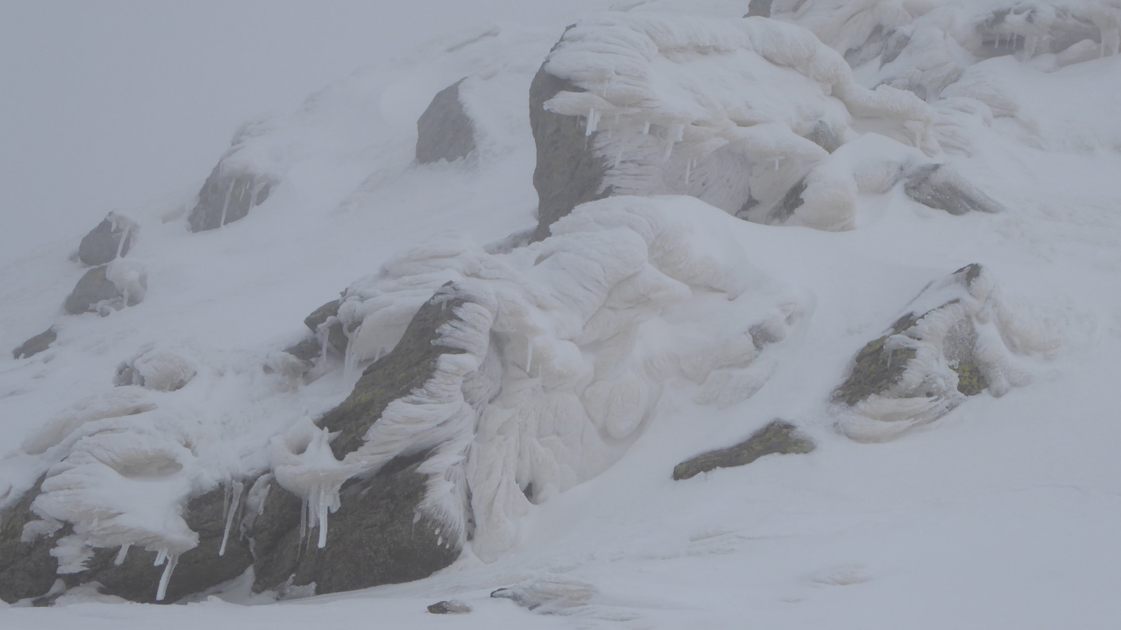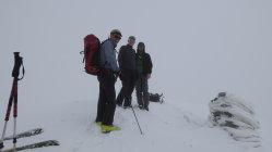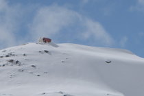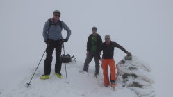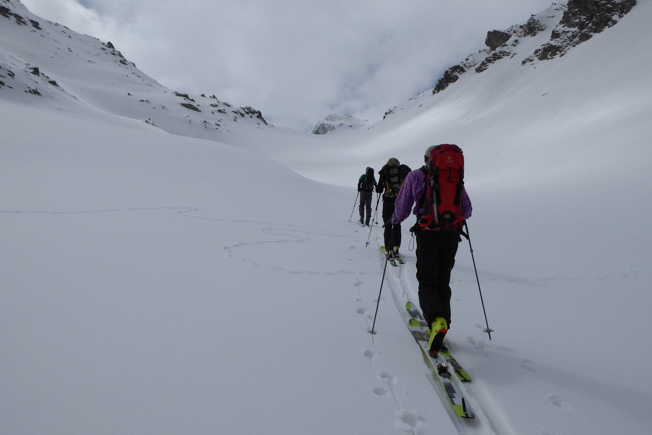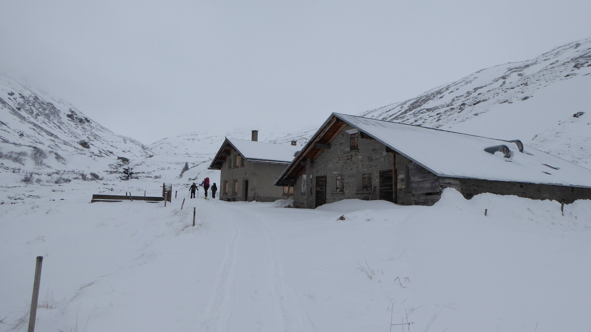 Zuerst müssen die Ski ca. 200 hm auf der Alpstrasse getragen werden,danach geht es mit dem Schnee vom Vortag gerade so. Schnee stark durchfeuchtet.