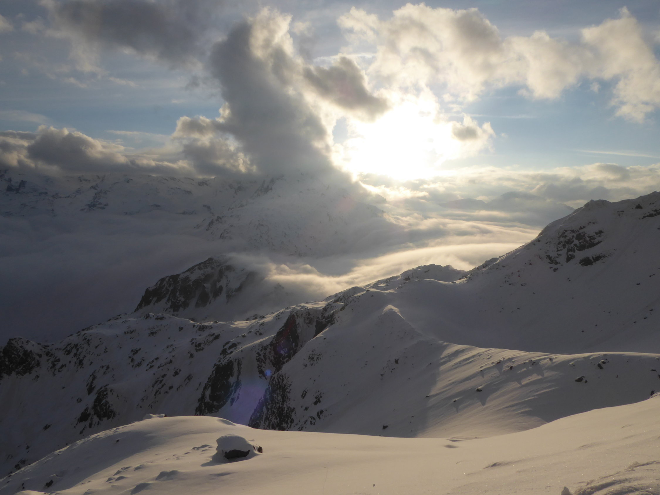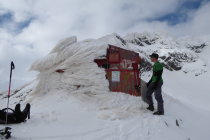 Wir sind vom Gipfel über den Surettapass zm Bivaco Suretta gestiegen. Gas und Decken vorhanden. Eine von der Zivilisation geradezu entrückten Abend und Nacht über den Wolken verbracht.