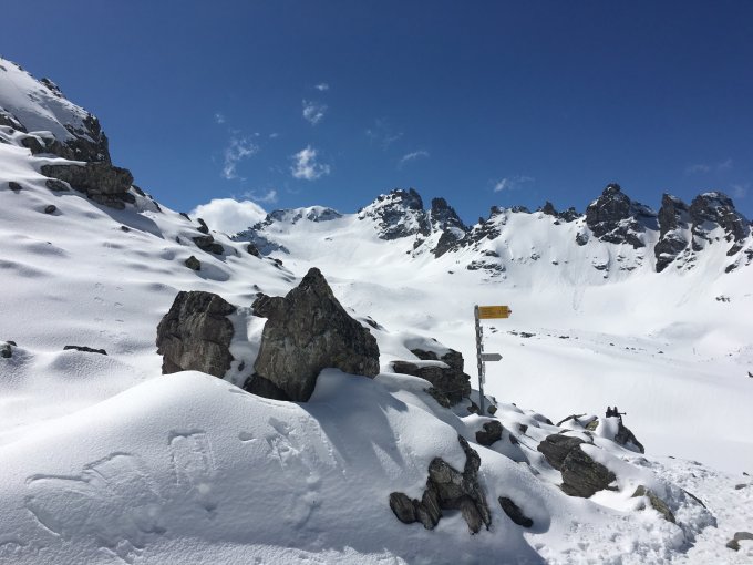 Start bei P. 1362 und etwa 40cm Schnee (tiefer sehr schnell nichts mehr).