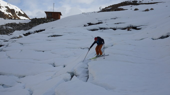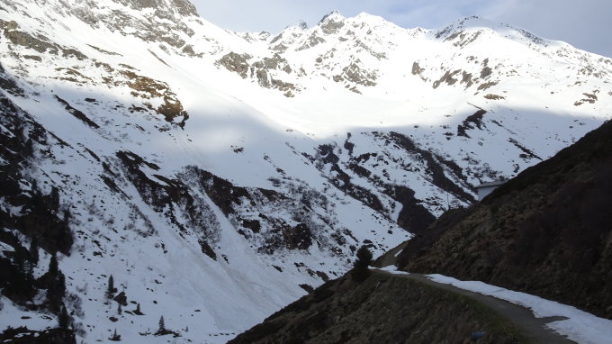 Der "Hatscher" ins Moostal wird wohl nicht mehr lange mit Skiern gehen, oben noch genug Schnee