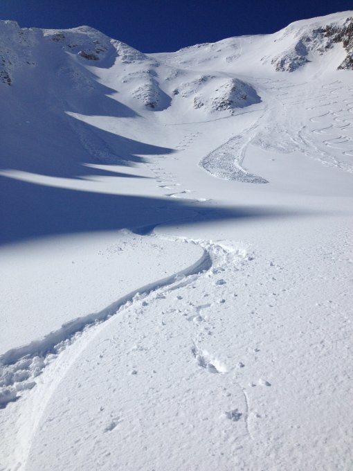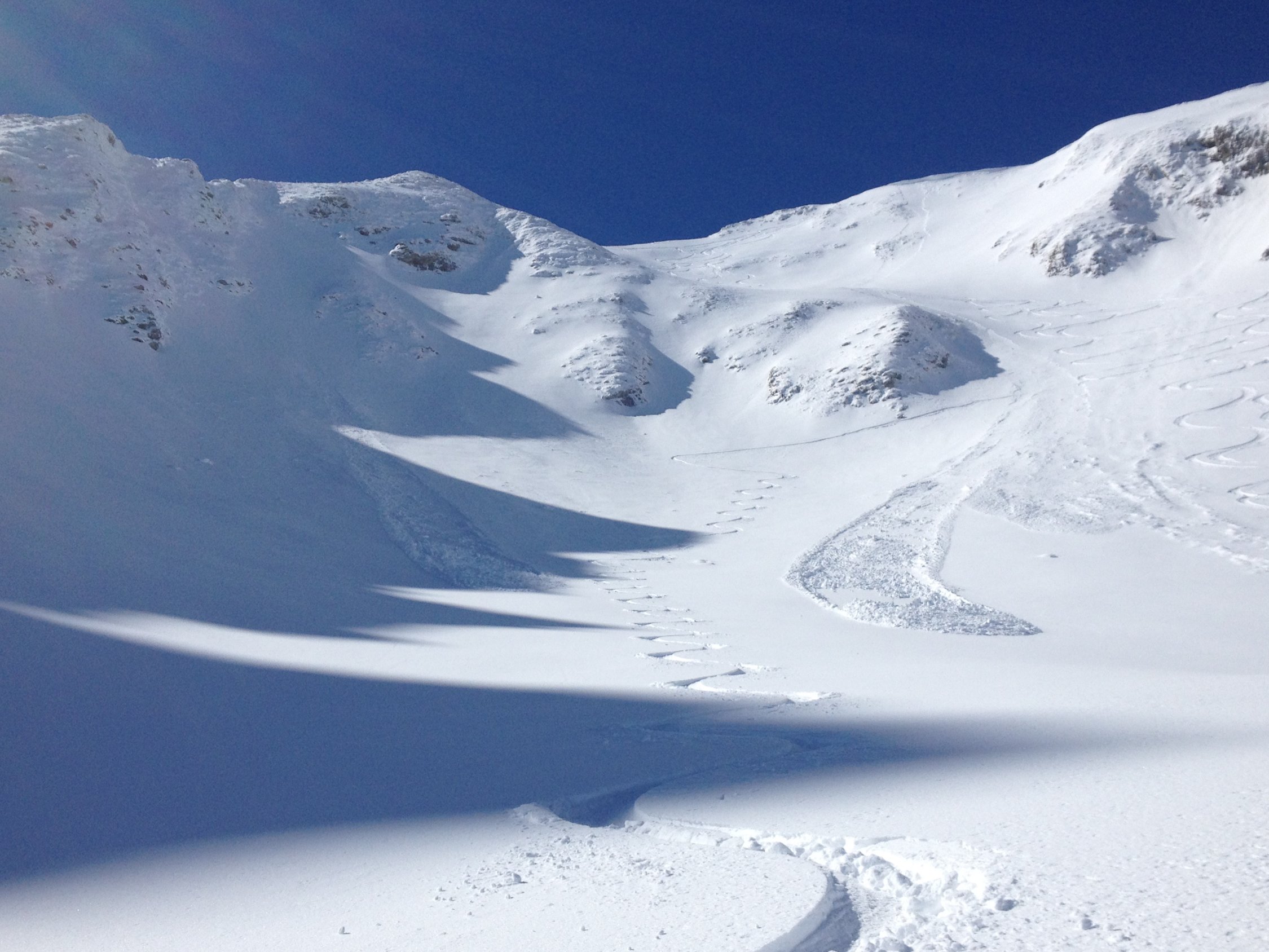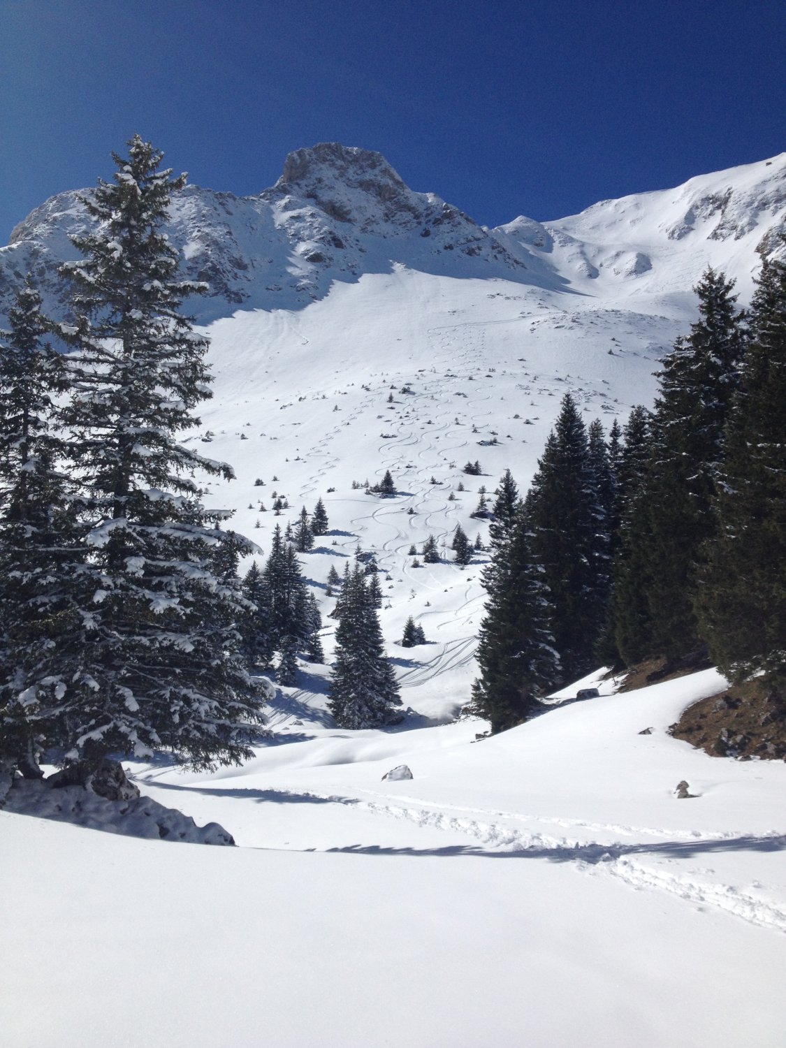 Heute sehr gute Verhältnisse in der Nordflanke, Pulver (unten etwas gebunden) bis zum Gantrischseeli. Laut SLF handgemessene 16cm Schnee auf heute dazugekommen im oberen Teil bis ca. 20cm. Auch die Südflanke der Bürglen ist wieder weiss. Die Ostcouloir können nicht befahren werden, da Gleitschneerutsche mit Spalten die Einfahrt verunmöglichen. Morgete war sehr gut (hoch unter den Felsen durch) gespurt, danke den Vorgängern...