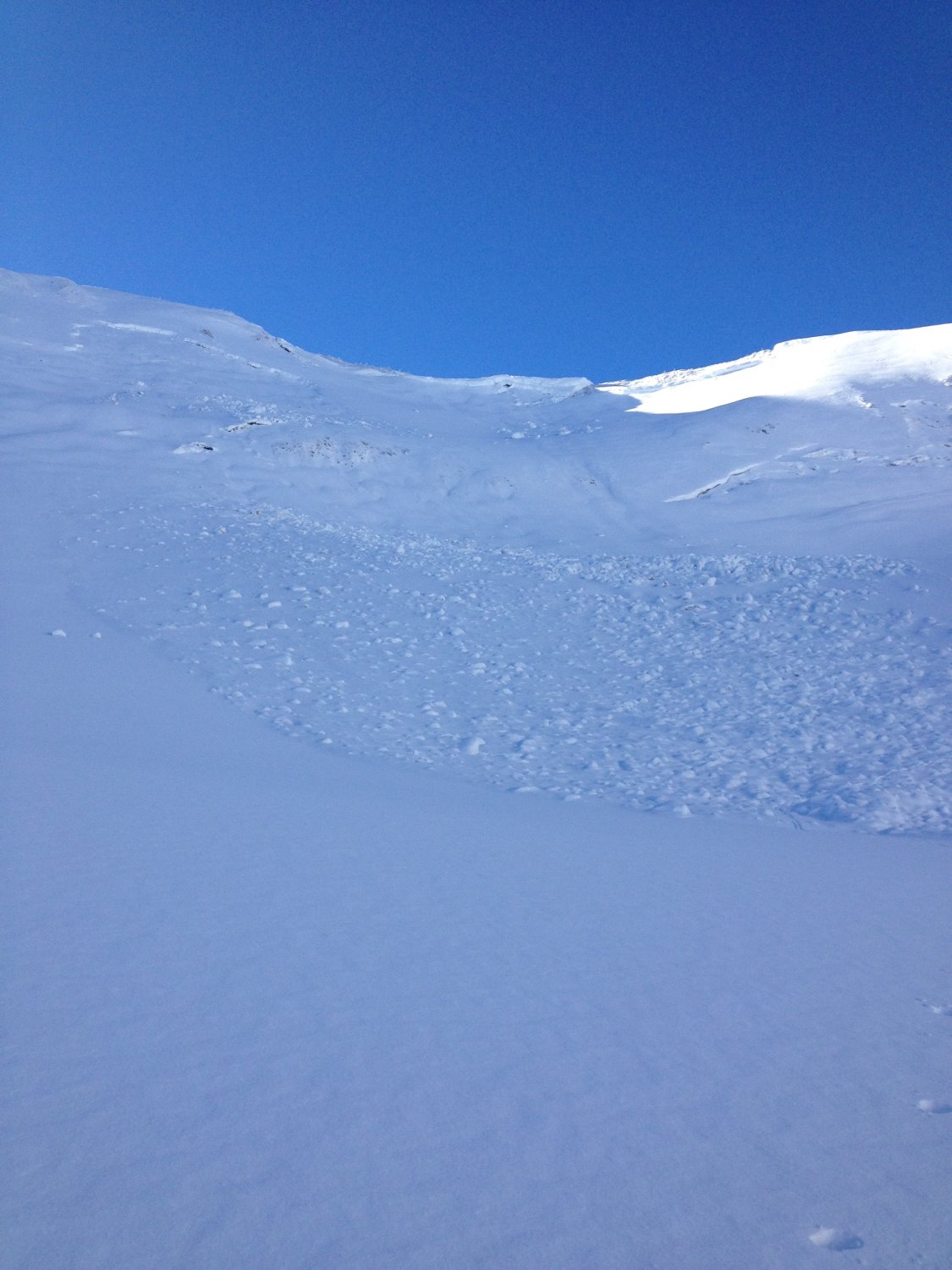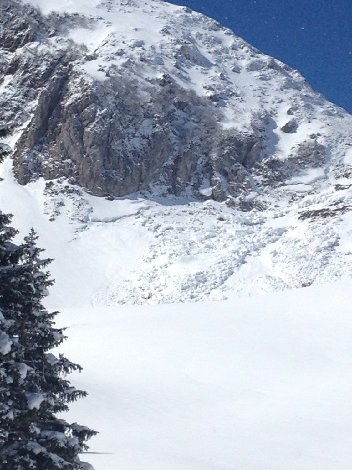 Etliche alte Nassschneelawinenzüge z.B. unten westlich an der Nordflanke der Bürglen und auch vom Schibespitz nordwärts.
