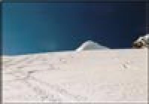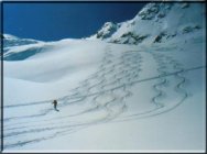 Im unteren Drittel einige Felsköpfe, daher beim Aufsteigen beobachten.Grund - Schneeverwehungen.