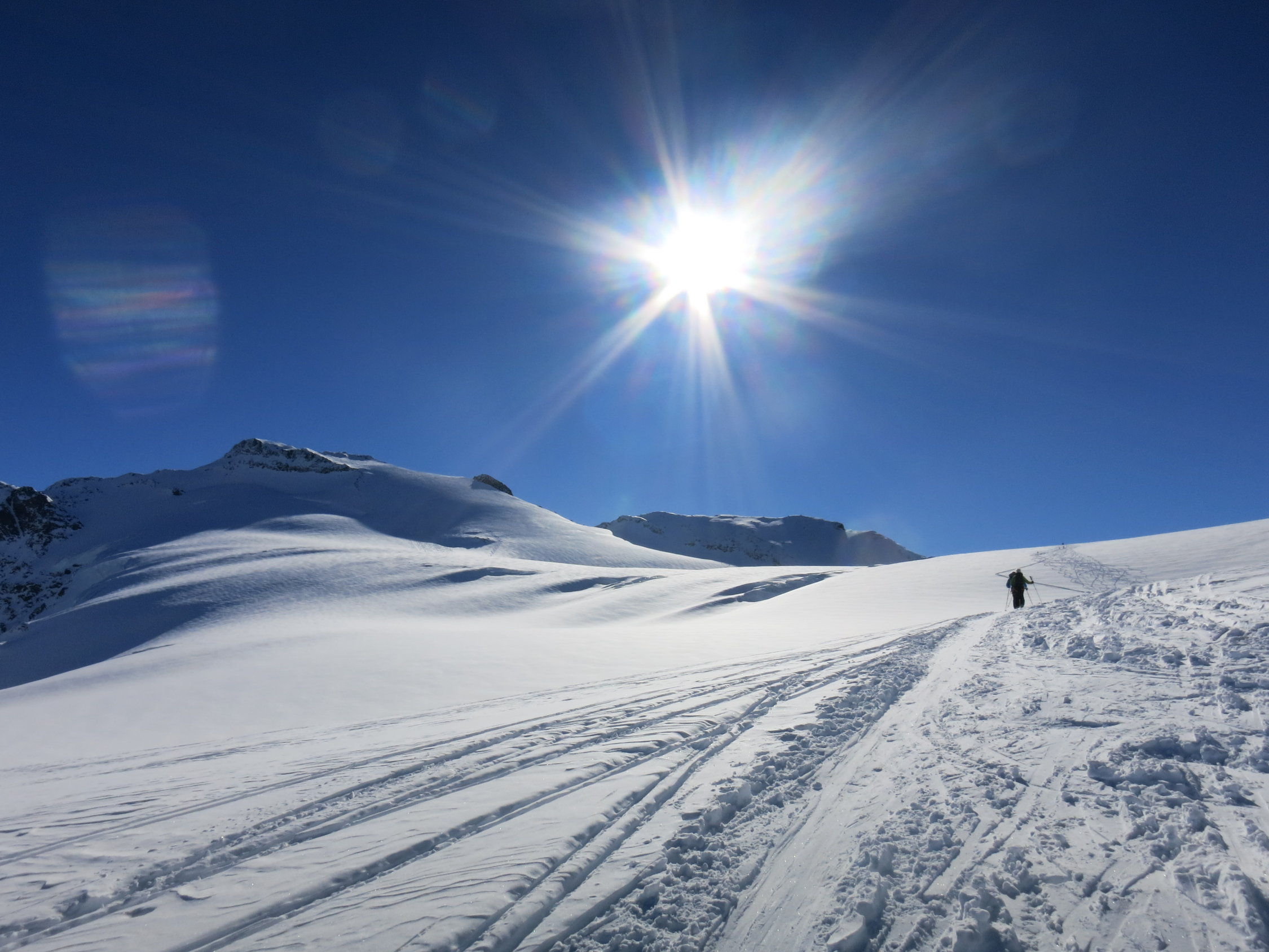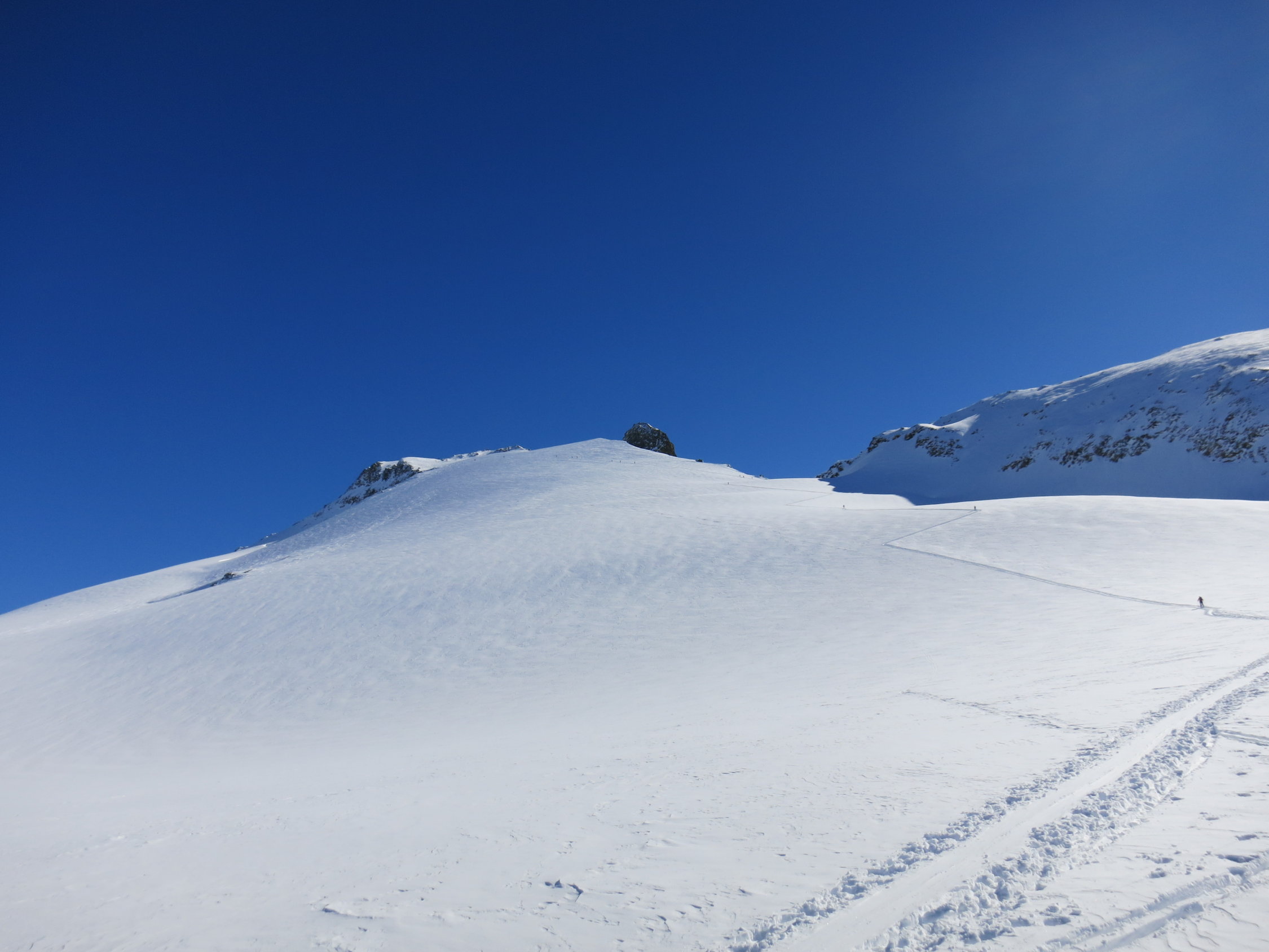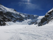 Sind um 6.15 beim Steingletscher gestartet. Gute, angenehm angelegte Spur bis auf den Gipfel. Oben leicht windgepresster Pulver, ab 2800m schwerer Pulver und dann weiter unten guter Sulz, wenn man die richtigen Hänge erwischt. Sind um 12 Uhr vom Gipfel abgefahren, dies passte perfekt.