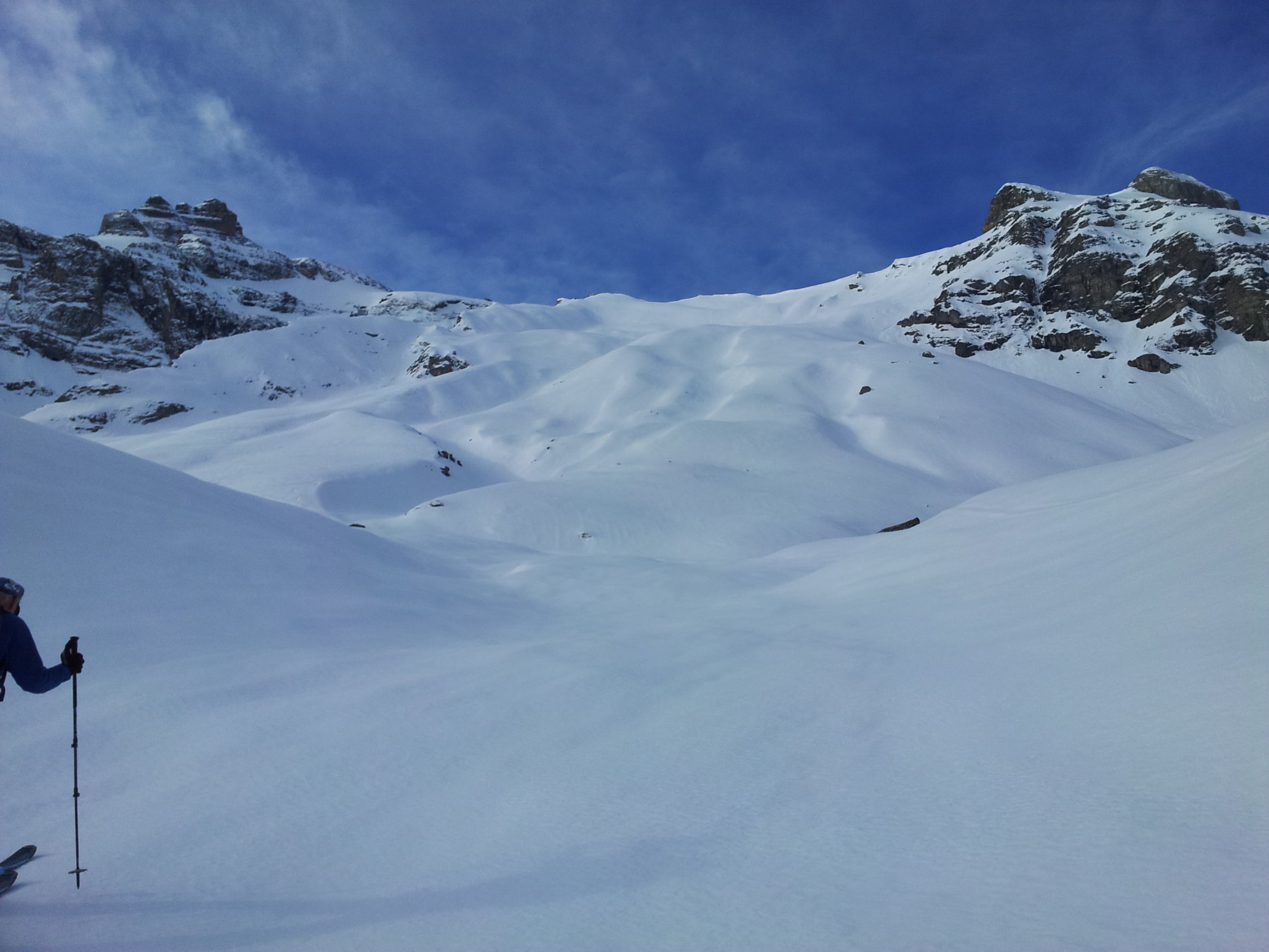 Wer es etwas einsamer will und etwas Skitragen nicht scheut, wird hier oben noch lange belohnt.