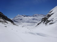 Wir sind noch ganz runter zum Aletschgletscher abgefahren, haben diesen überquert, sind dann via "Chatzulecher" zum Bettmergrat aufgestiegen und runter auf die Bettmeralp abgefahren. Ergibt dann total ca. 2400Hm Aufstieg und 2800m Abfahrt.