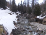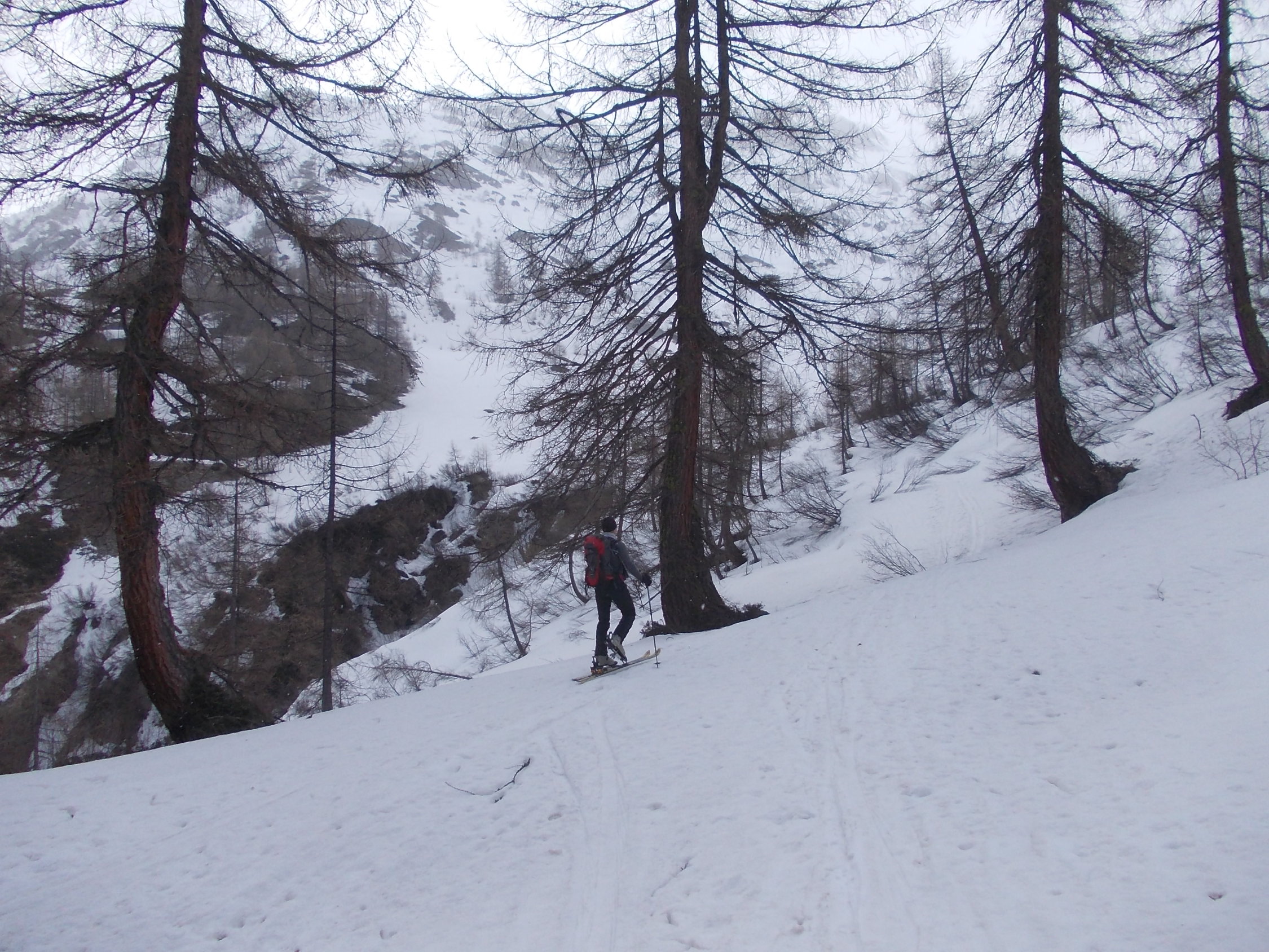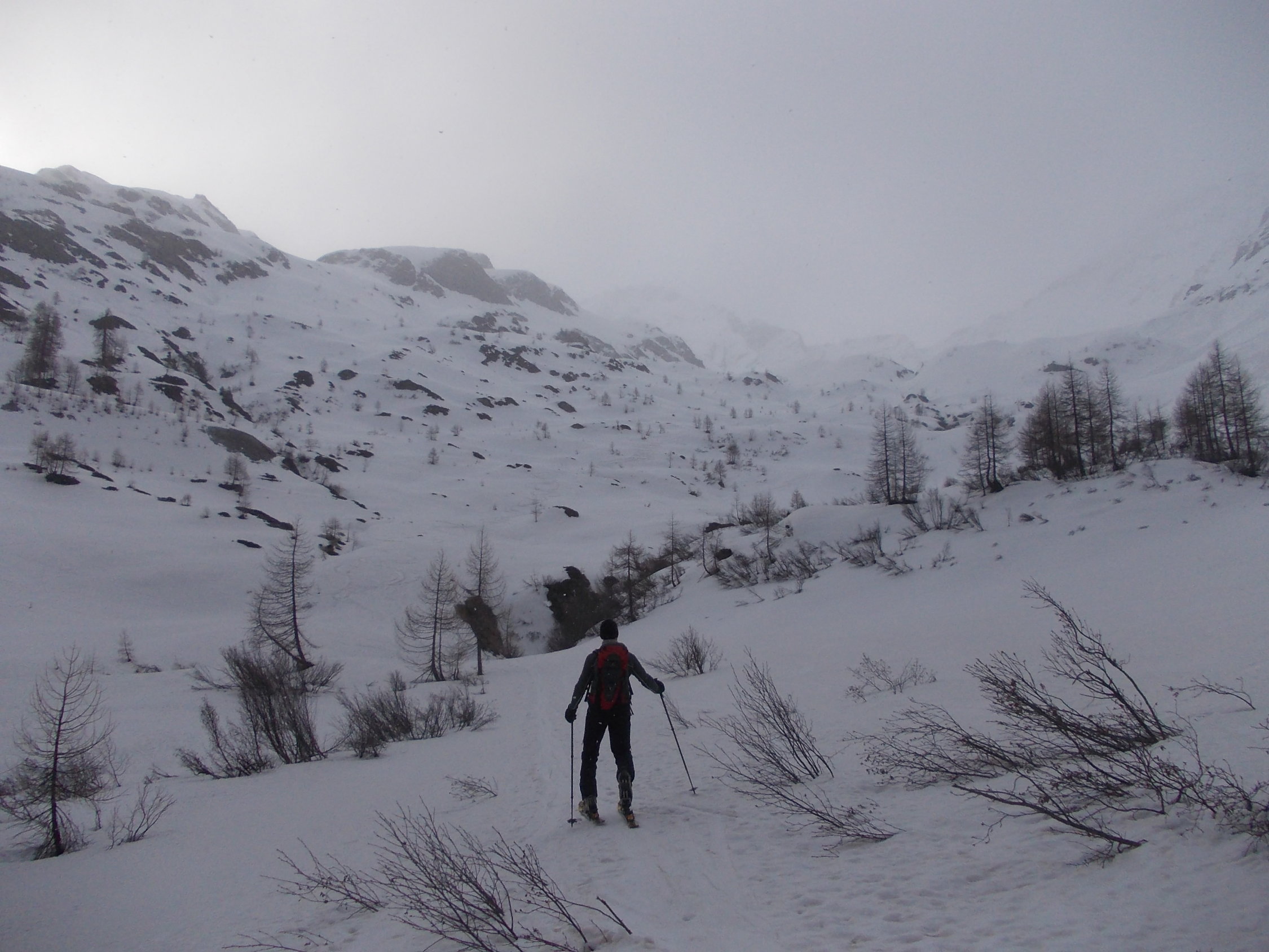 Tragender Firn, darüber ein dünner Neuschneeflaum, über Nacht gab es keine nennenswerten Niederschläge im Val Bedretto. Die Route ist beliebt und die Schneedecke entsprechend stark eingefahren. Der Abstieg ist unter solchen Bedingungen mit Schneeschuhen zwar etwas mühsam, bzw. knieunfreundlich, die Schneedecke dafür gut griffig. Schnee ab Ticino-Brücke.