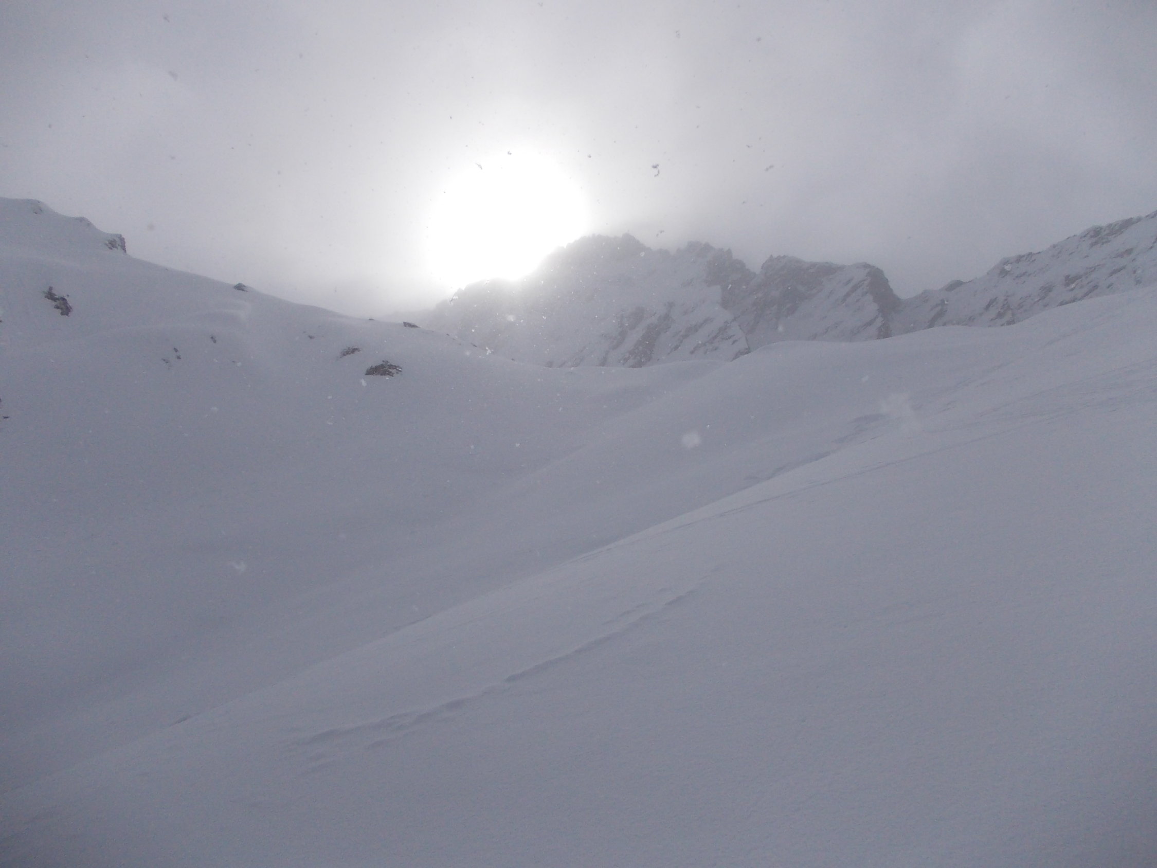 Akzeptabel Bedingungen, sowohl hinsichtlich des Wetters, als auch des Schnees. Mehrheitlich herrschten eingeschränkte Sichtbedingungen vor, hin und wieder zeigte sich aber auch kurz die Sonne, und ein paar Neuschneekrümel hat´s auch gegeben.