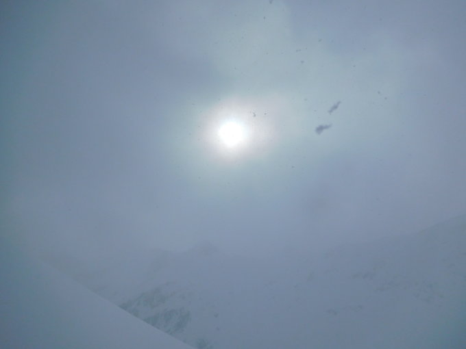 Die Schneeverhältnisse waren super für die Abfahrt, leider oben schlechte Sicht.