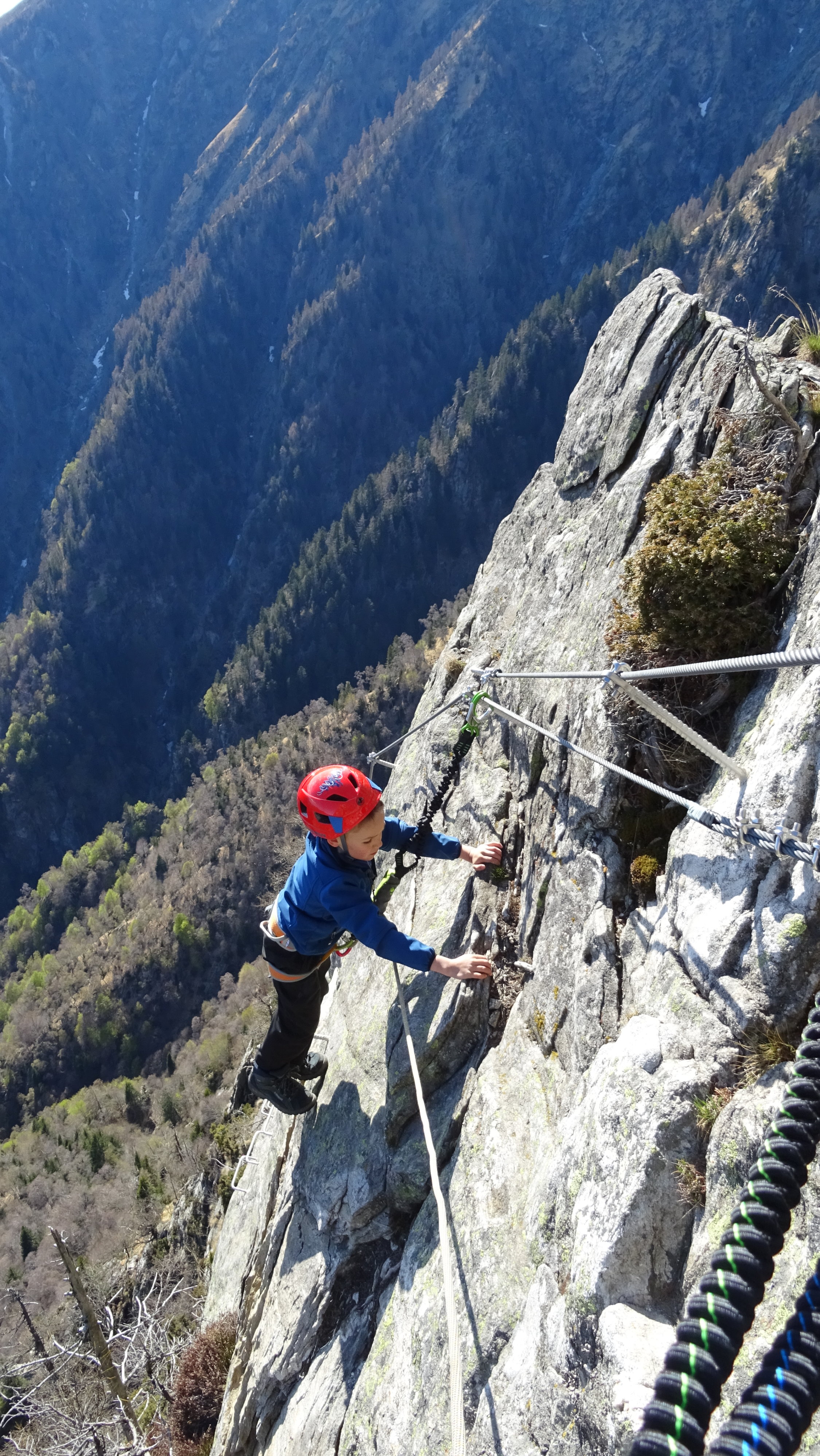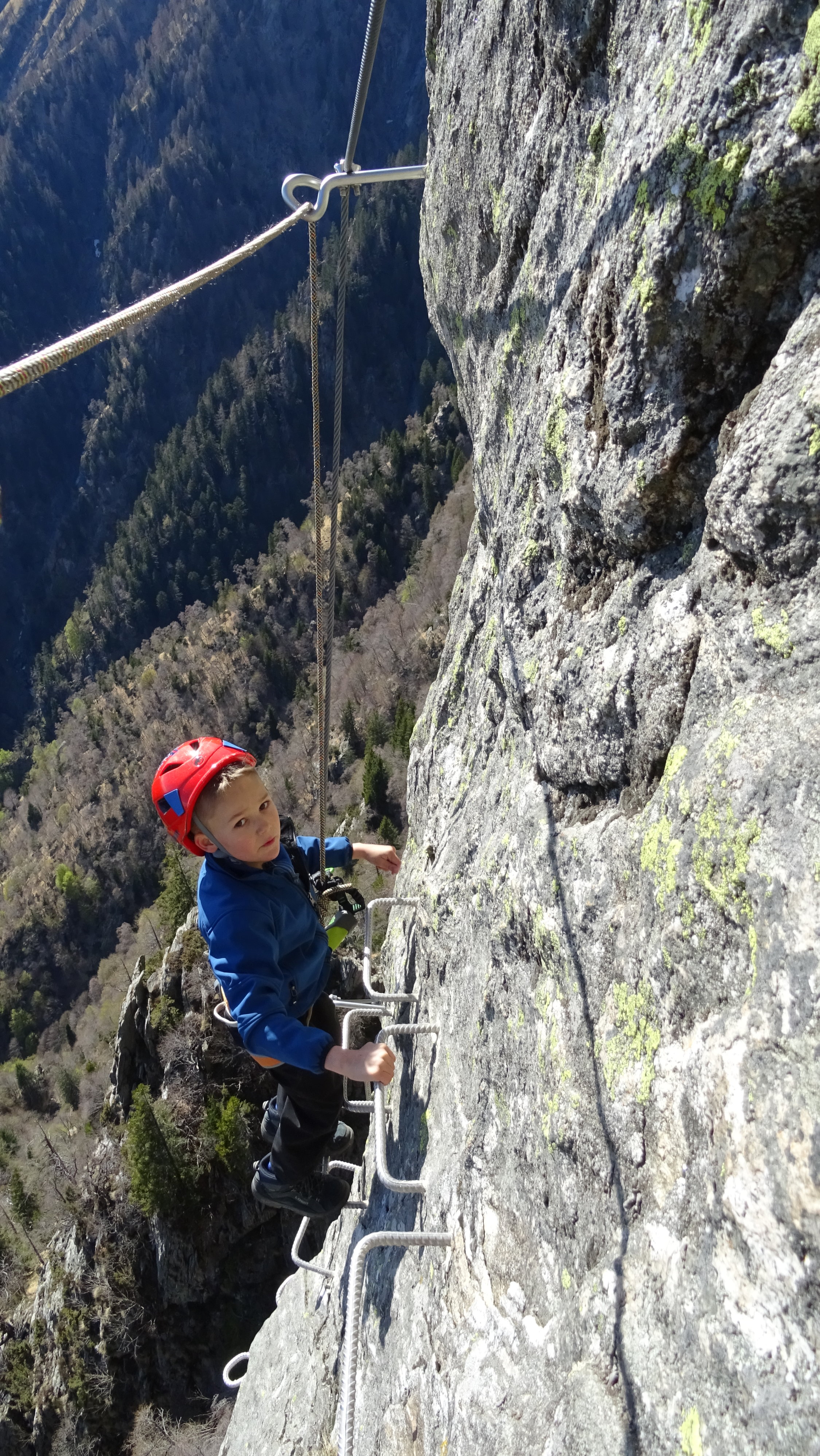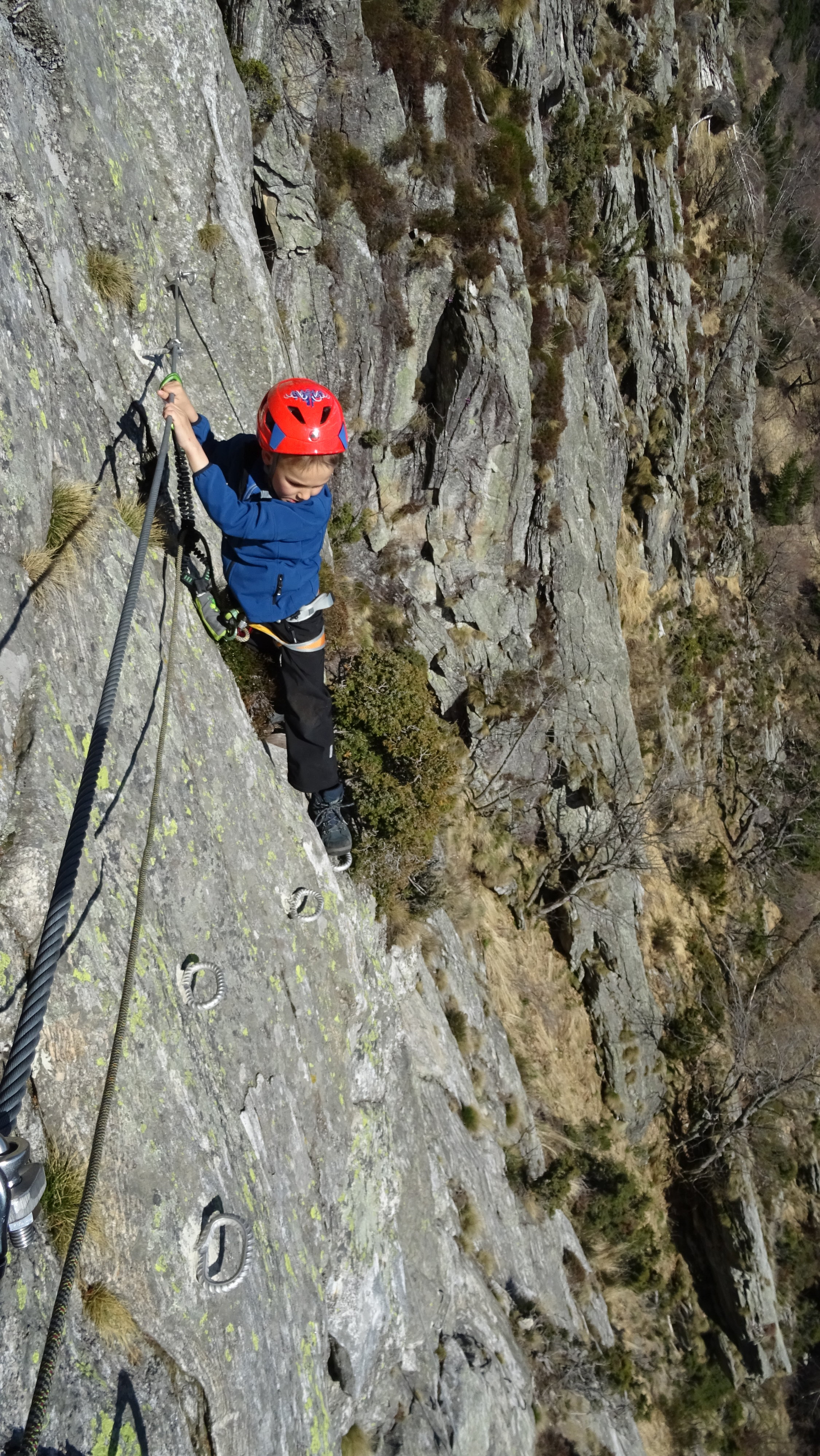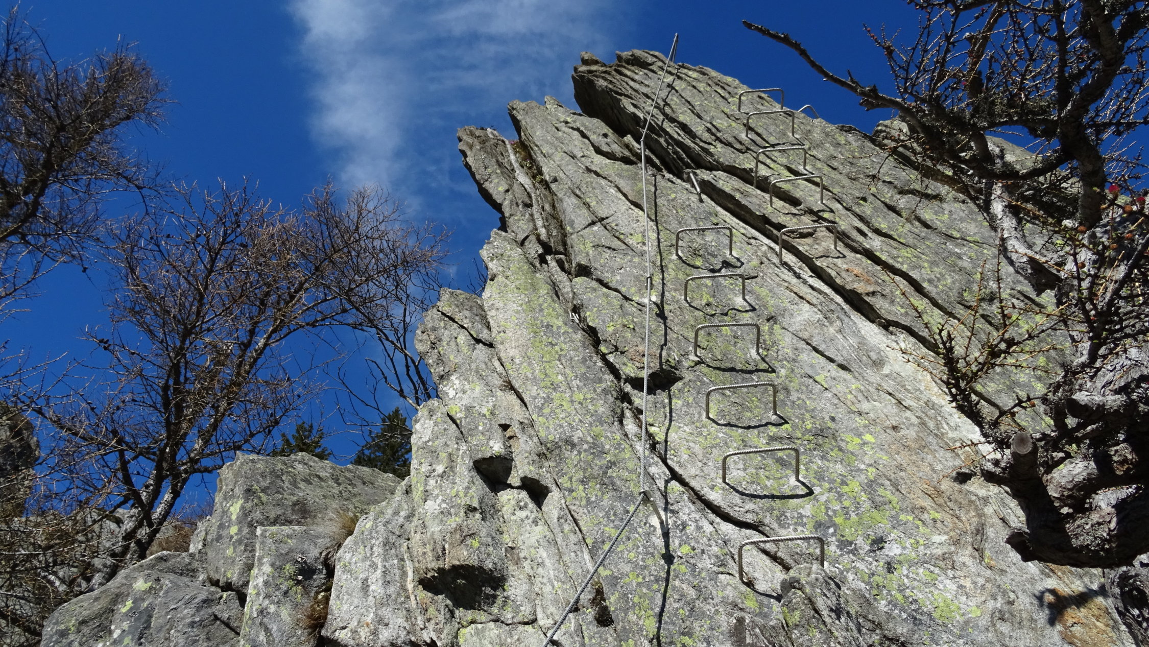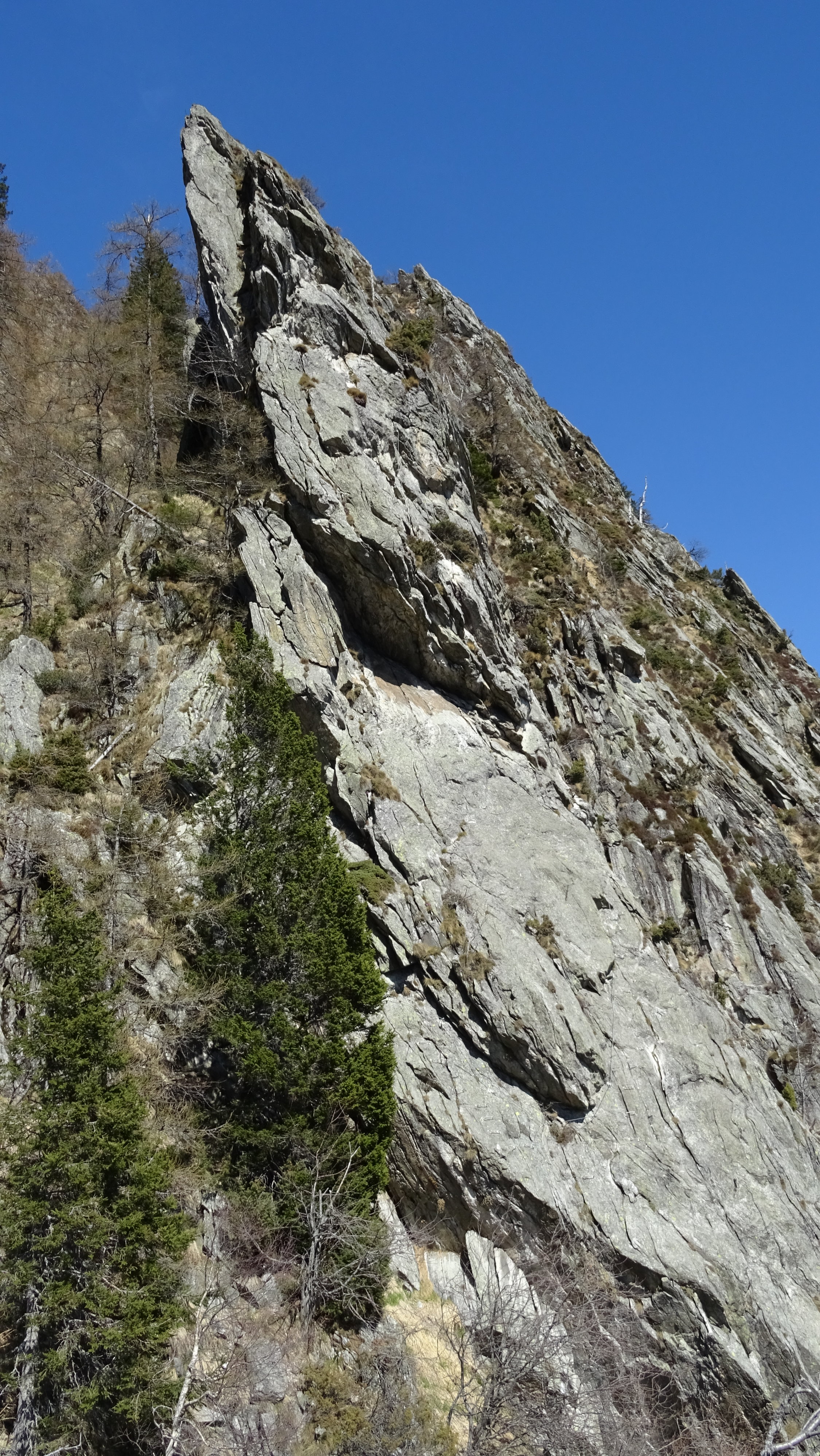 Mehrheitlich trocken. Im oberen Teil extrem windig. Der Klettersteig ist seit dem 20.4. offen und bietet perfekte Sicherungen. Der untere Teil ist deutlich leichter und weniger ausgesetzt als der obere rechte Aufstieg im mittleren Schwierigkeitsgrat.