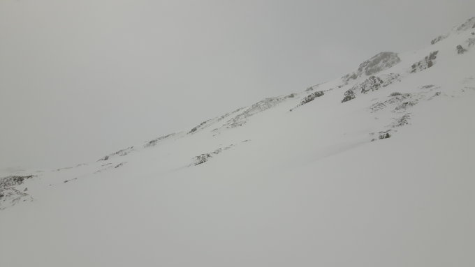 Oberste 100hm total abgeblasen (deshalb wagte ich es nochmals auf den Grat zurück). Nachher einfach nur grandios. Habe im diffusen Licht versucht, nicht gerade die steilsten Hänge zu erwischen. Aber alles in allem hielt der Schnee erstaunlich gut, auch im Aufstieg nichts lawinentechnisches angetroffen.