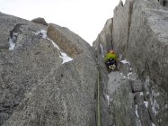 Die Verschneidung in der dritten Seillänge ist die klare Schlüsselstelle. Der Ausstieg aus dieser ist zur Zeit nicht ganz einfach und lässt sich insbesondere nur mässig absichern.
